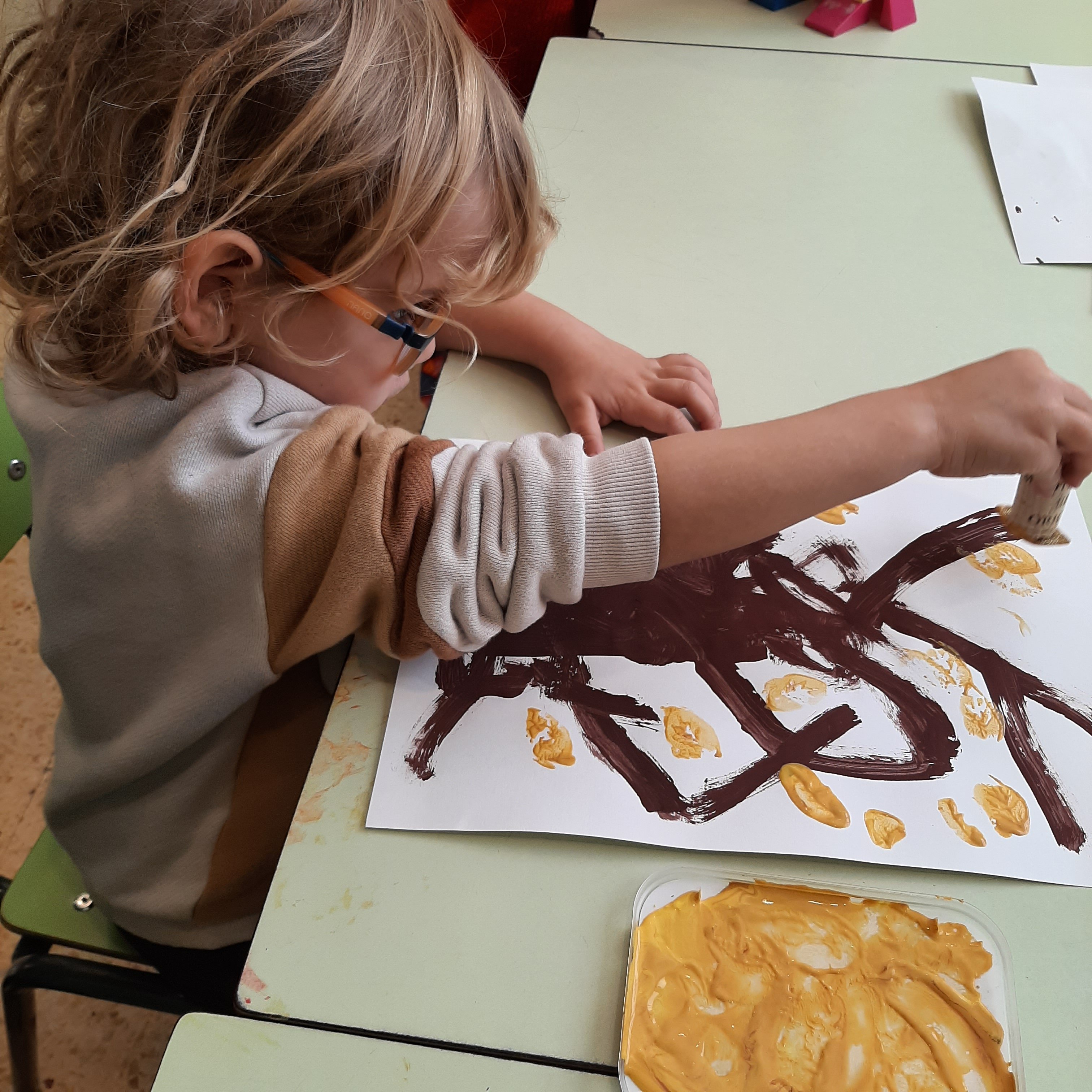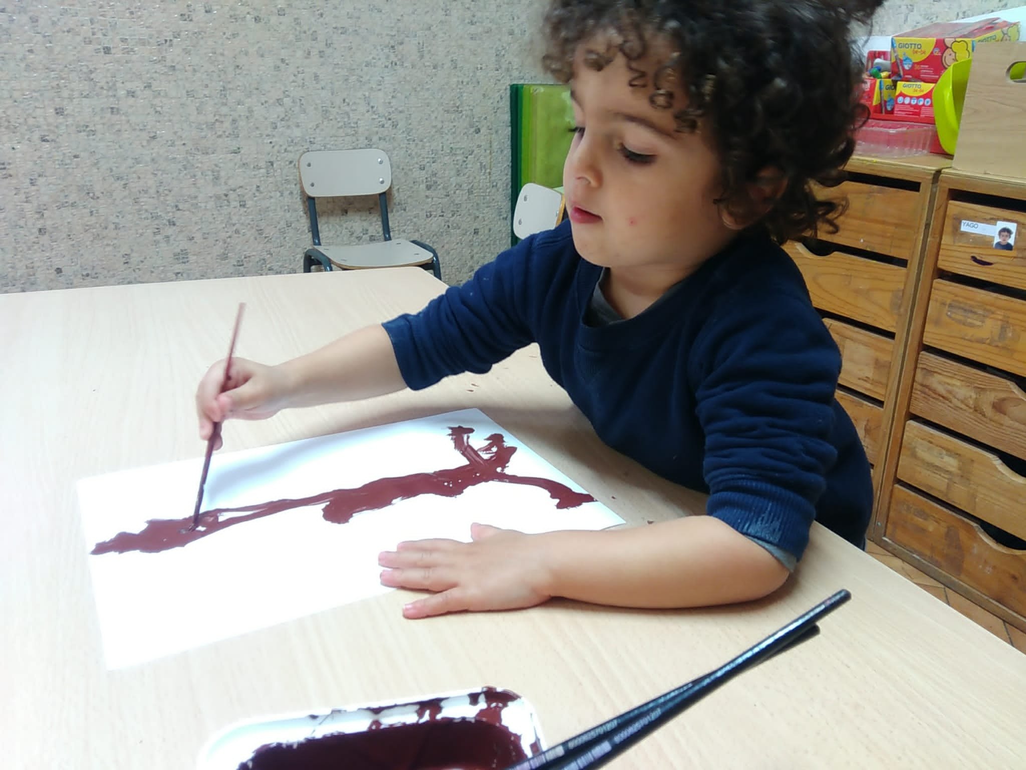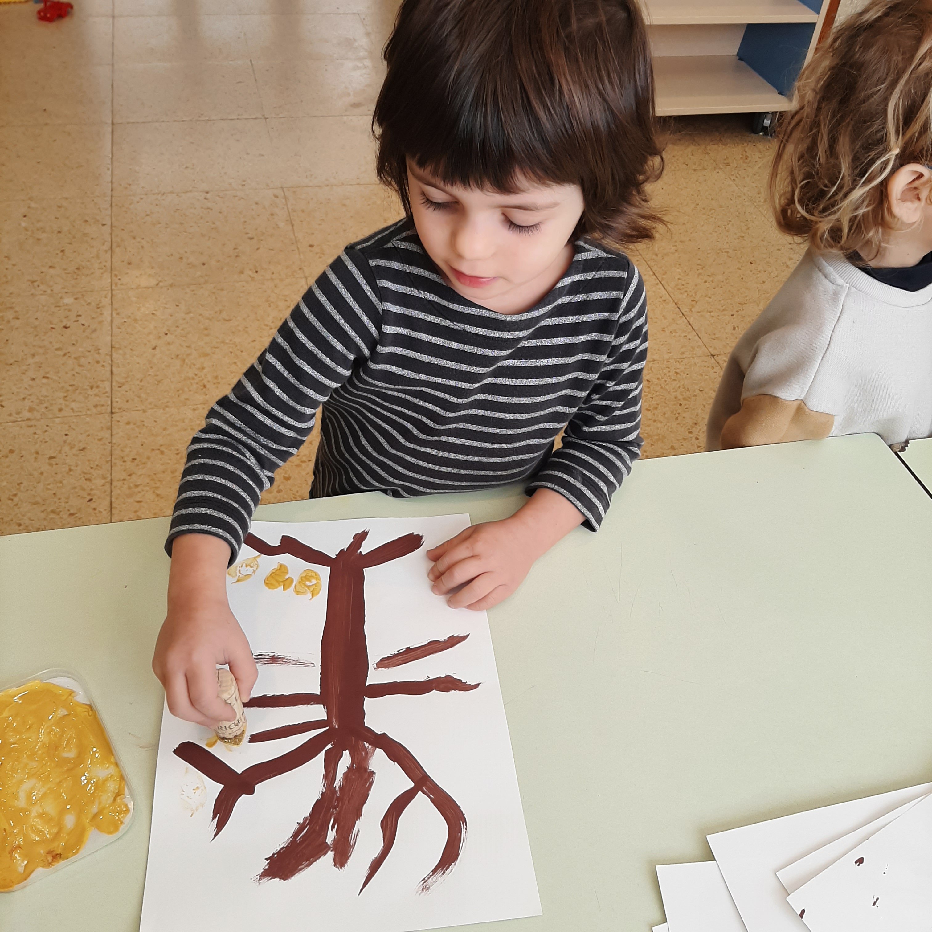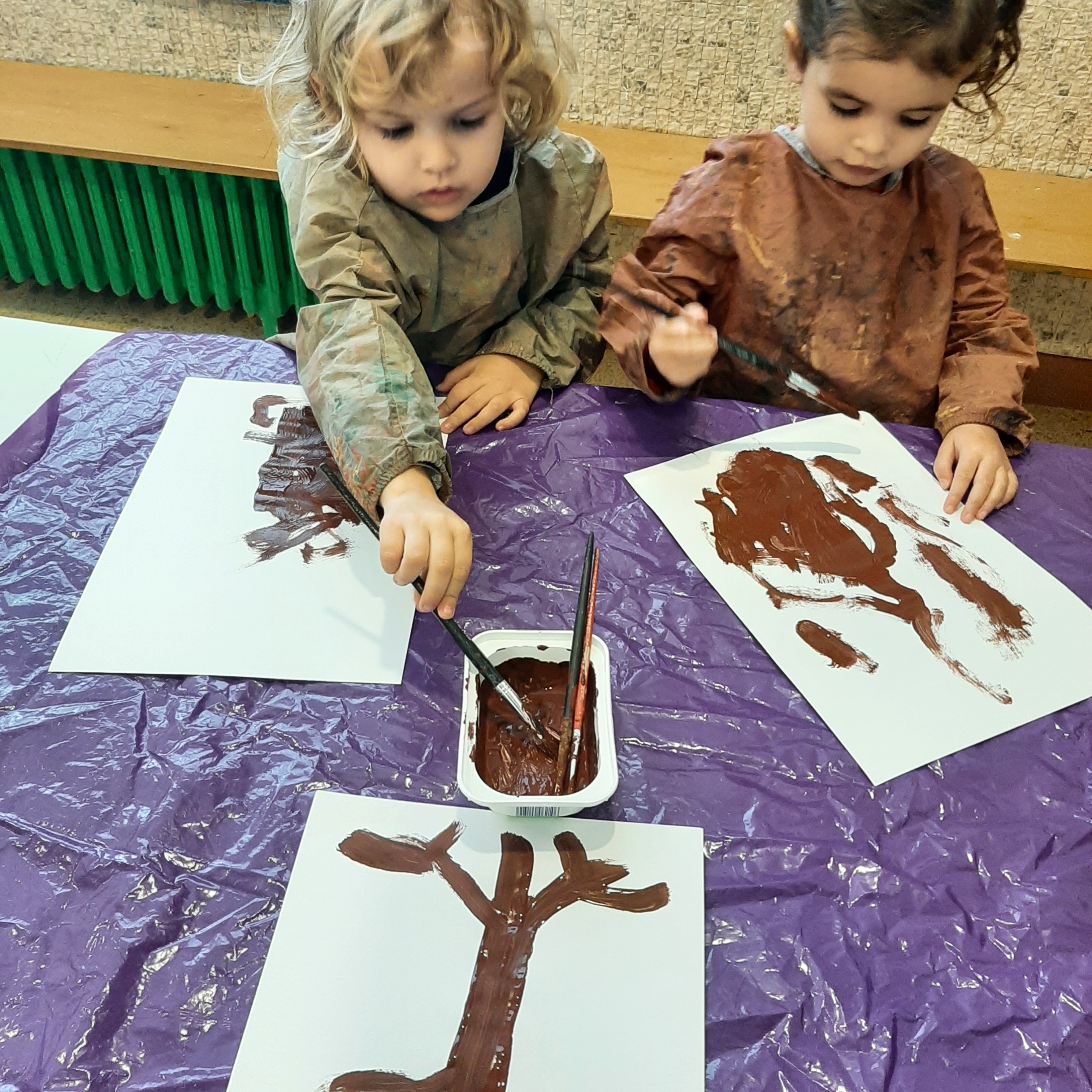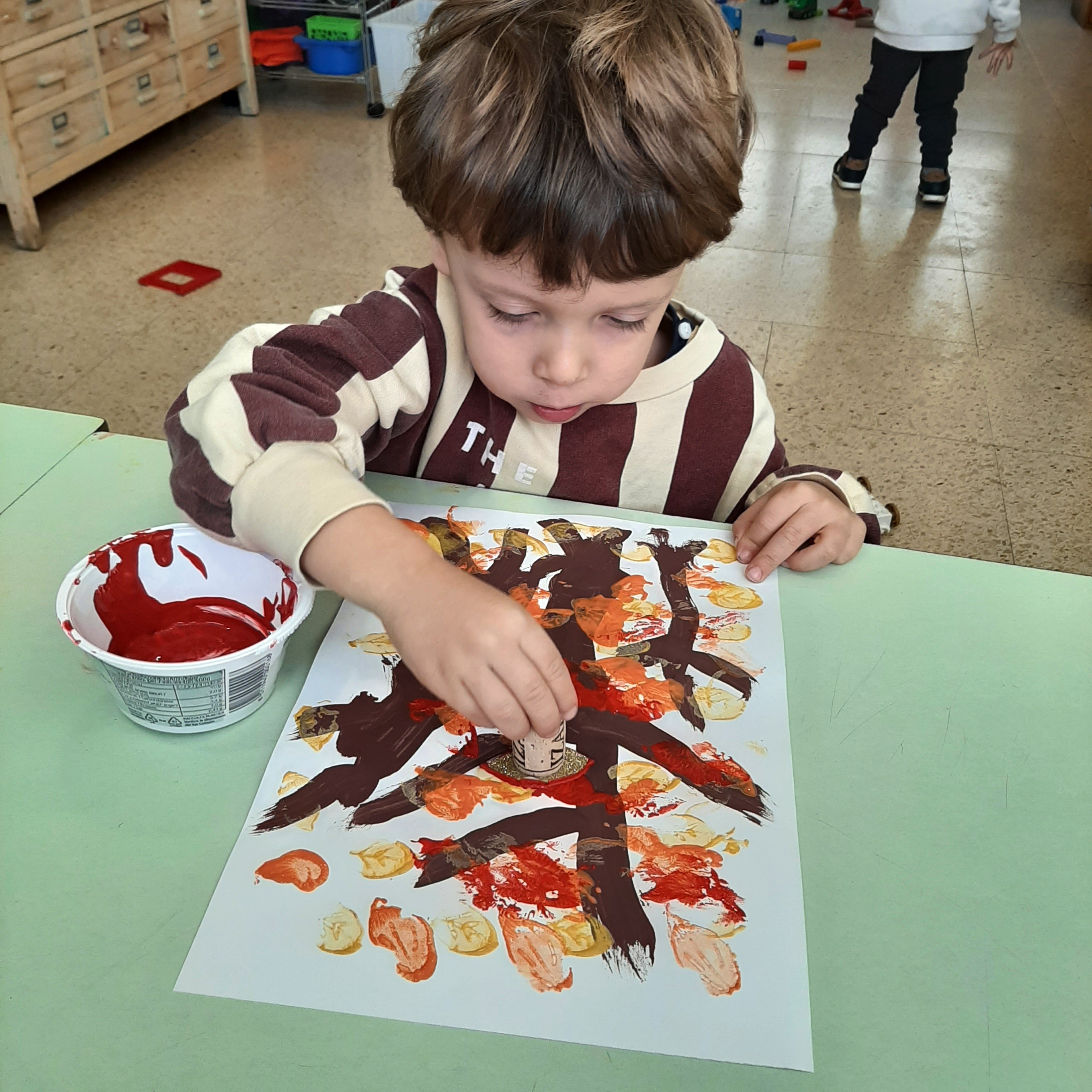 Dopo la lettura del libro: “L’albero vanitoso” di Nicoletta Costa, ci siamo soffermati ad osservare come molti alberi in autunno perdano le loro foglie. Abbiamo visto come i colori dei boschi cambiano, giocando con varie sfumature. Cosí con pennelli e pitture abbiamo voluto ricreare il nostro bosco autunnale. Ognuno di noi ha dipinto il proprio albero e poi con degli stampi ha impresso tante foglie cadenti, di colore giallino, arancione e rossiccio. Quale é stato il risultato? Guardate un po’ anche voi……
