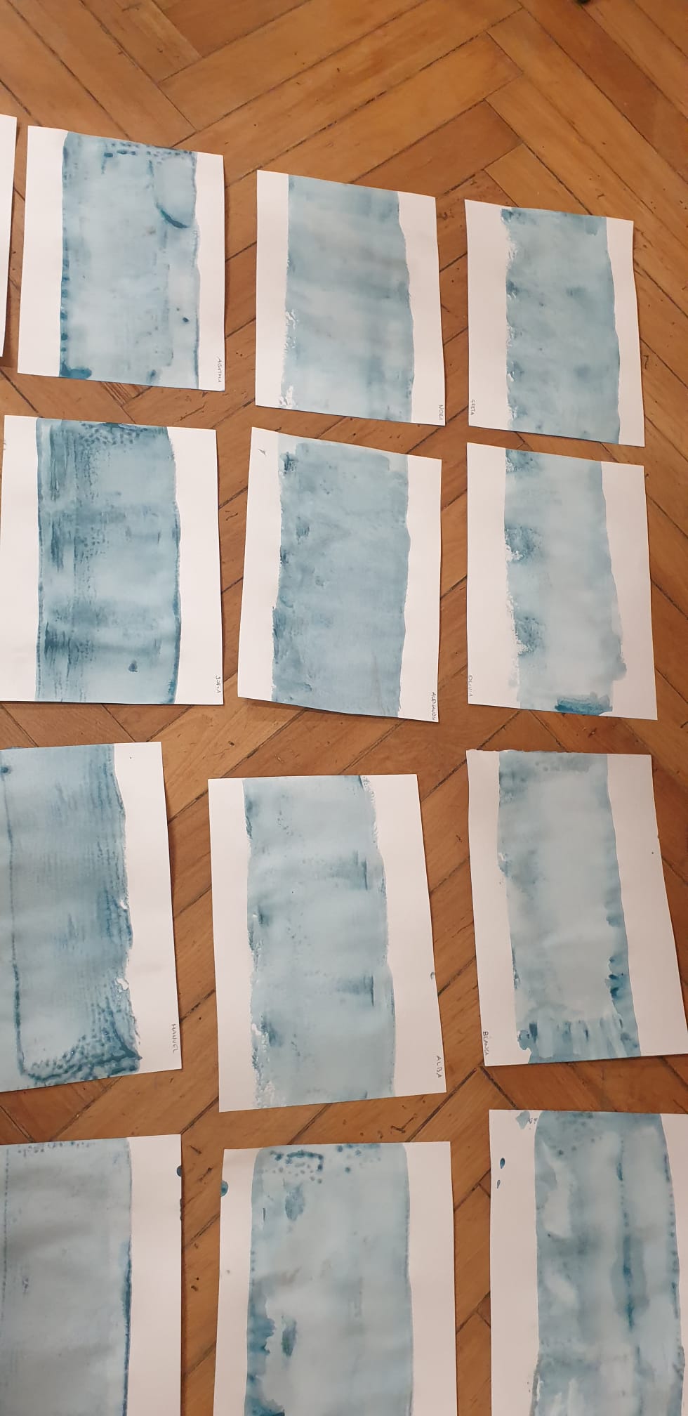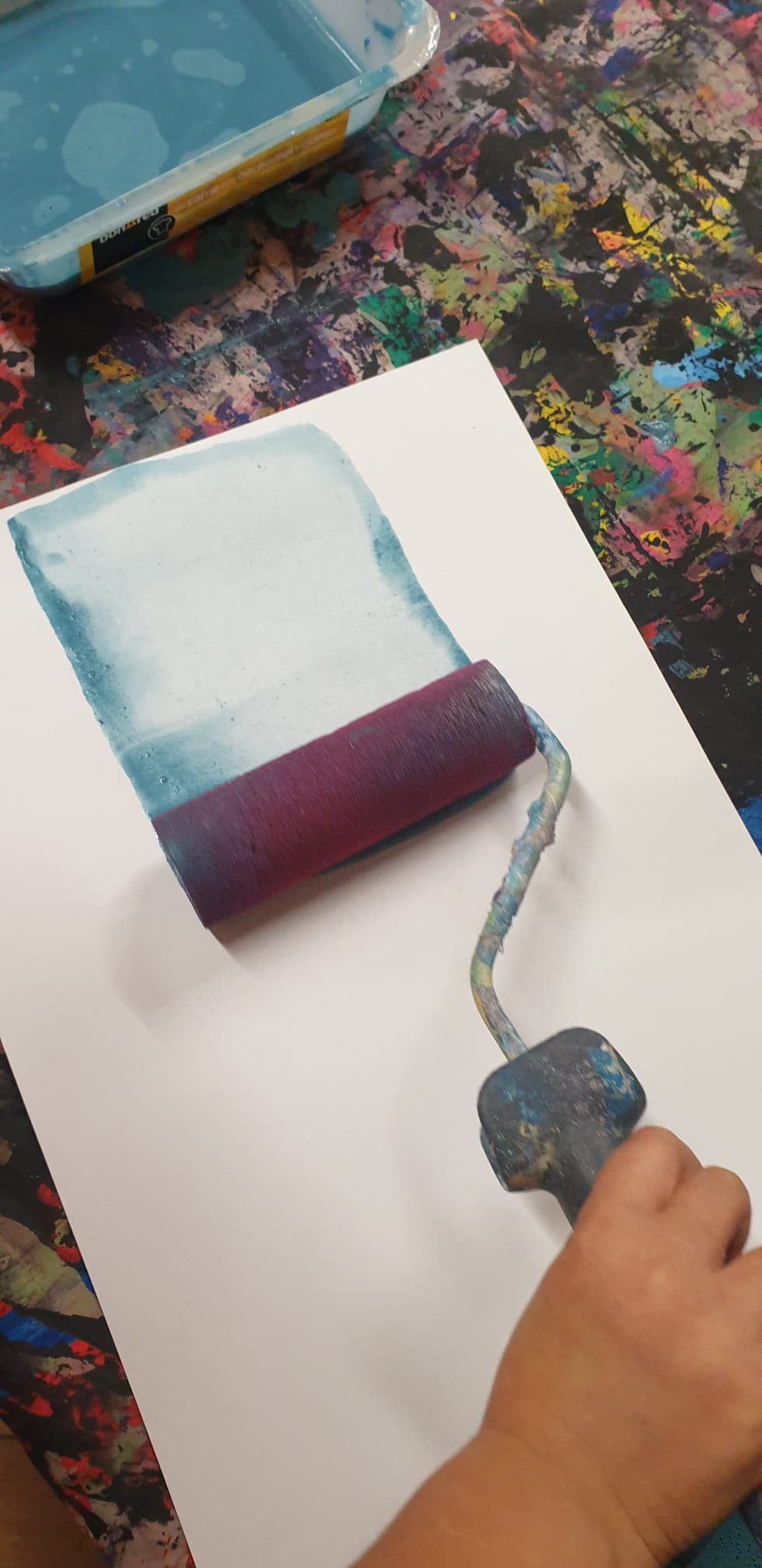 Prima improvvisiamo il Mar Antartico con il rullo e il colore.