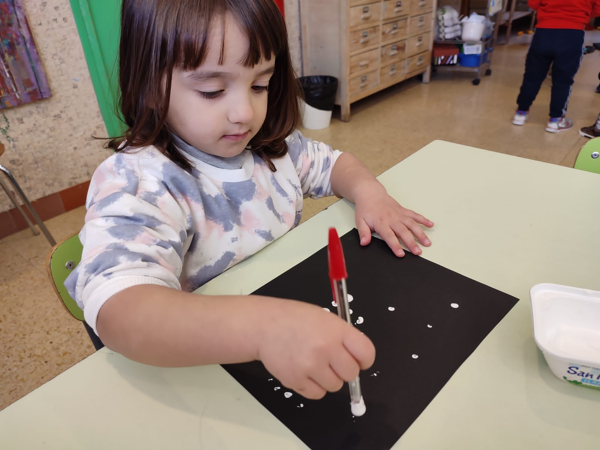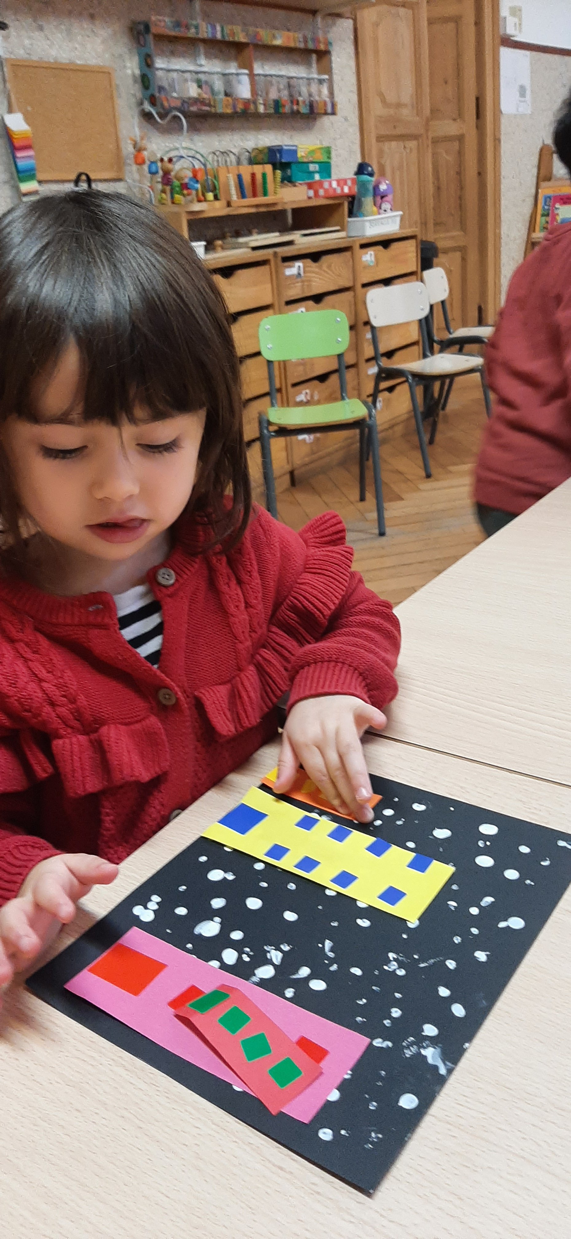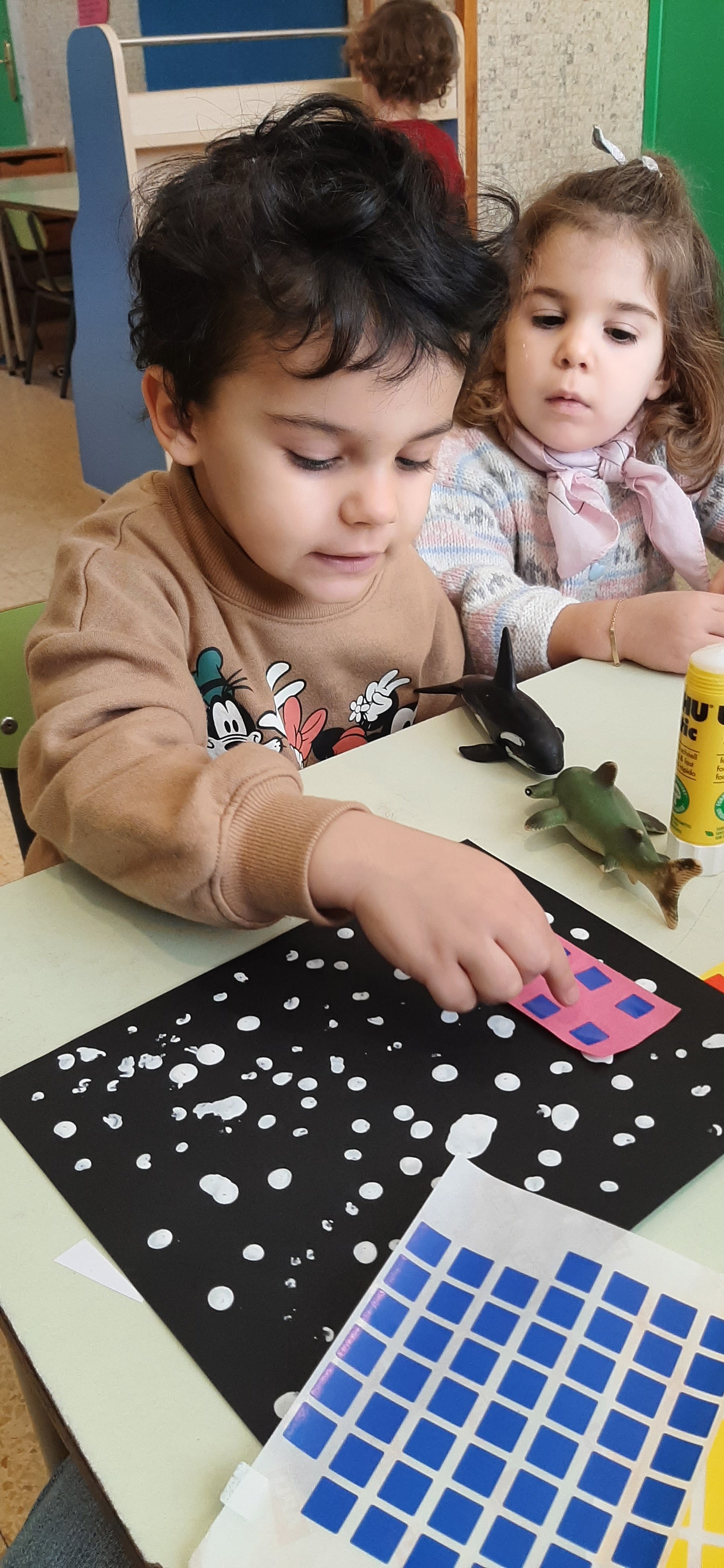 É giunto l’inverno, ci soffermiamo a riflettere su questa stagione. Fa piú freddo e dobbiamo coprirci di piú. Ma é anche bello perché, a volte, cade la neve, che é soffice, bianca e pure “bagnata”. Cosi ci divertiamo a ricreare con cartoncini, pitture ed adesivi, un paesino con tante casette colorate, ricoperte di candida neve.