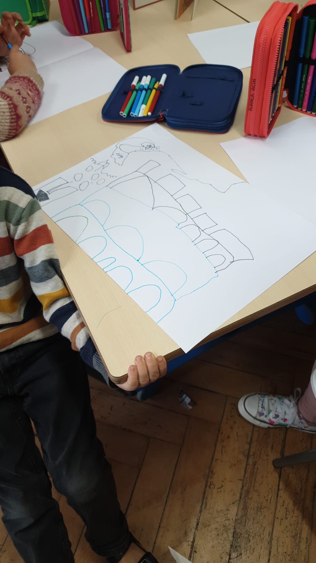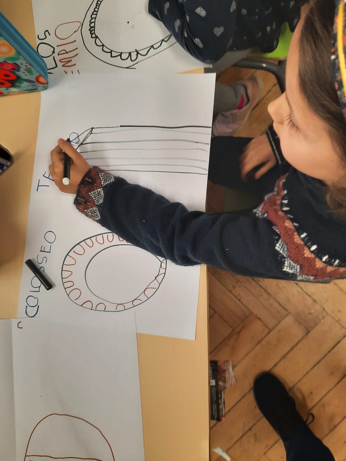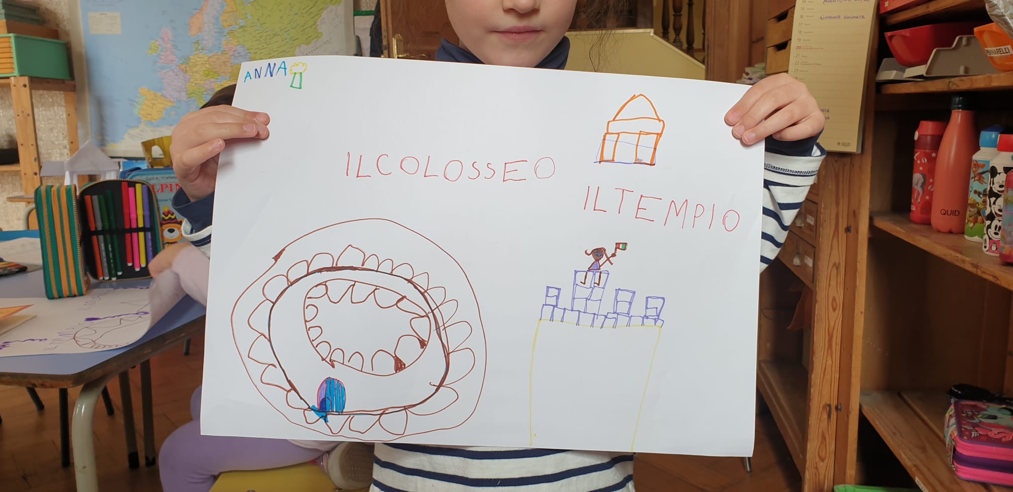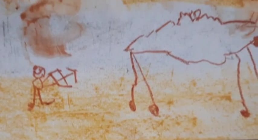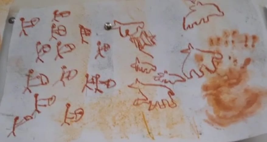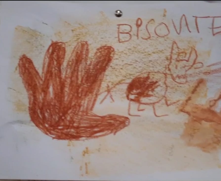 Partiamo dalle grotte. Dopo la visione di un video sulla grotta di Altamira riproduciamo con i colori della terra le pitture rupestri.