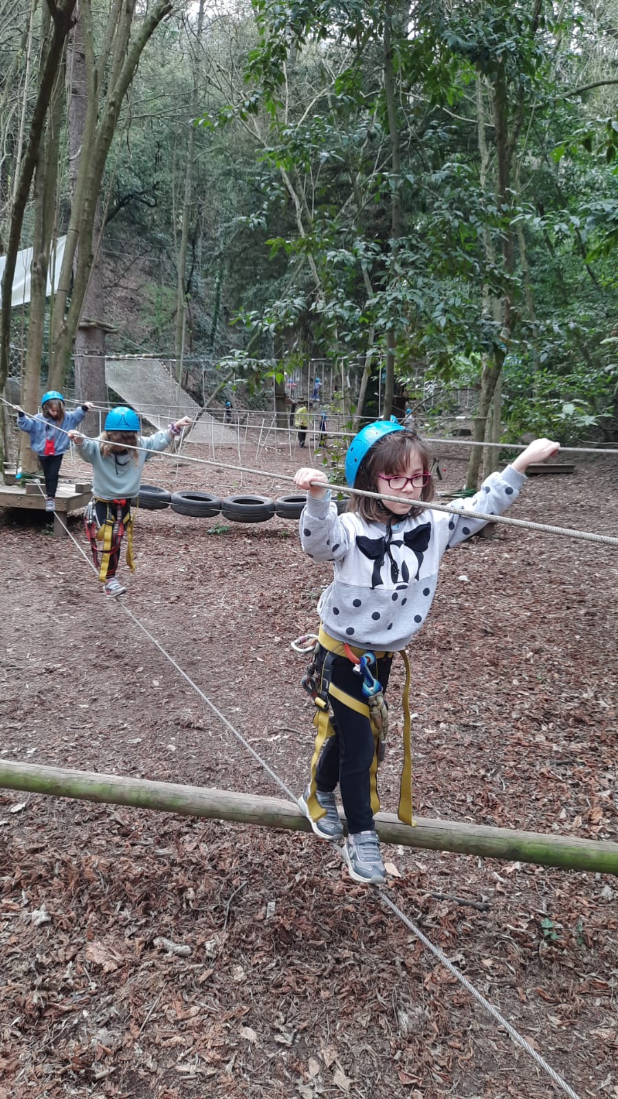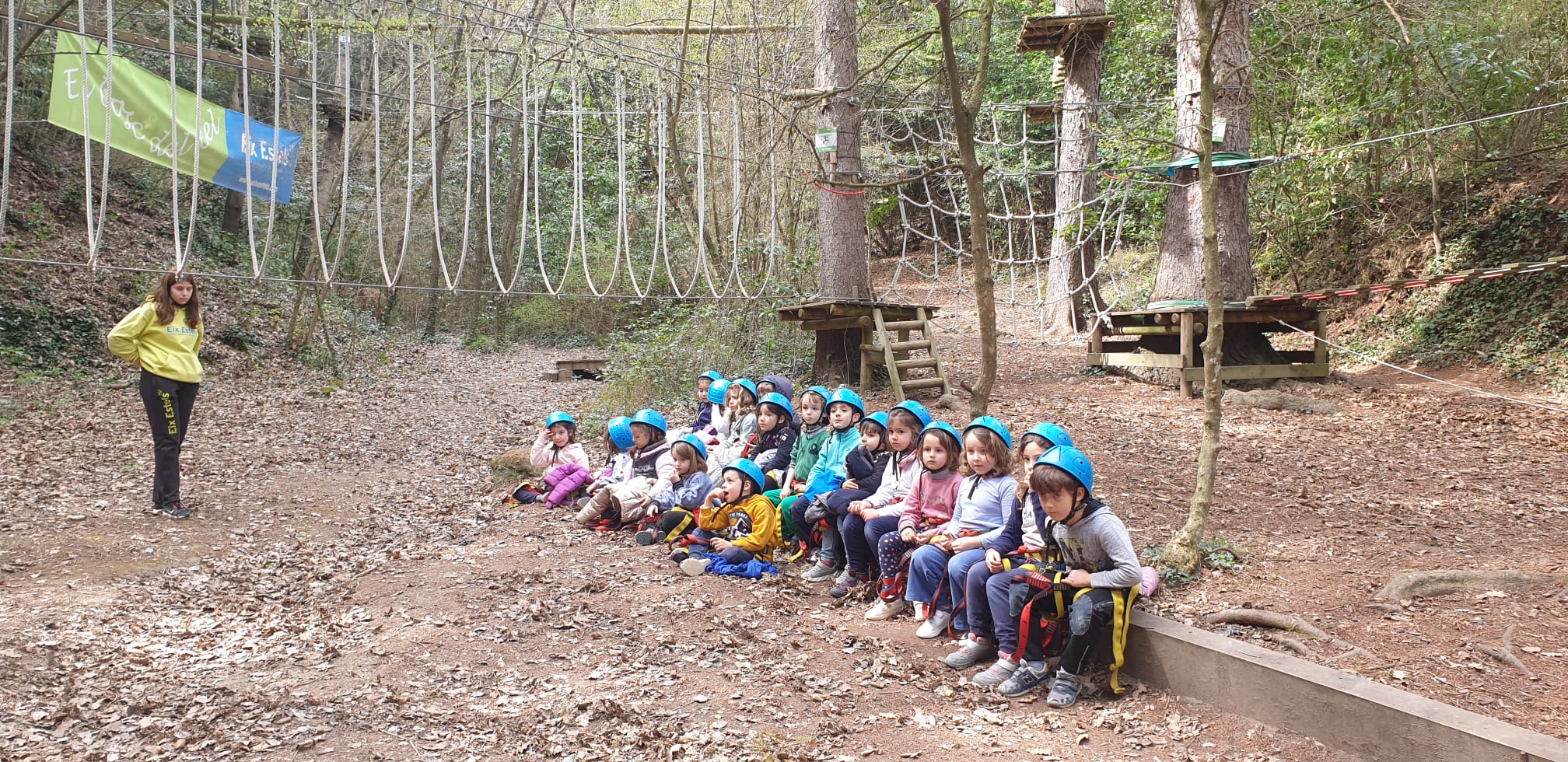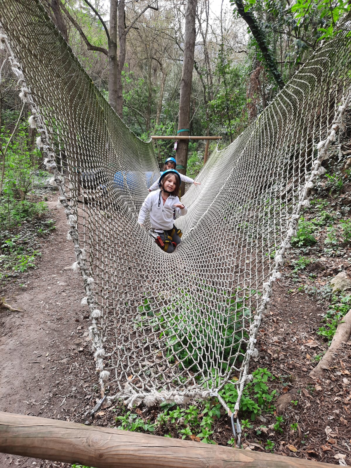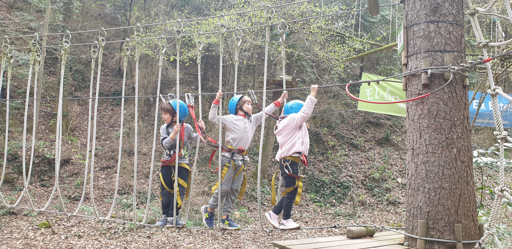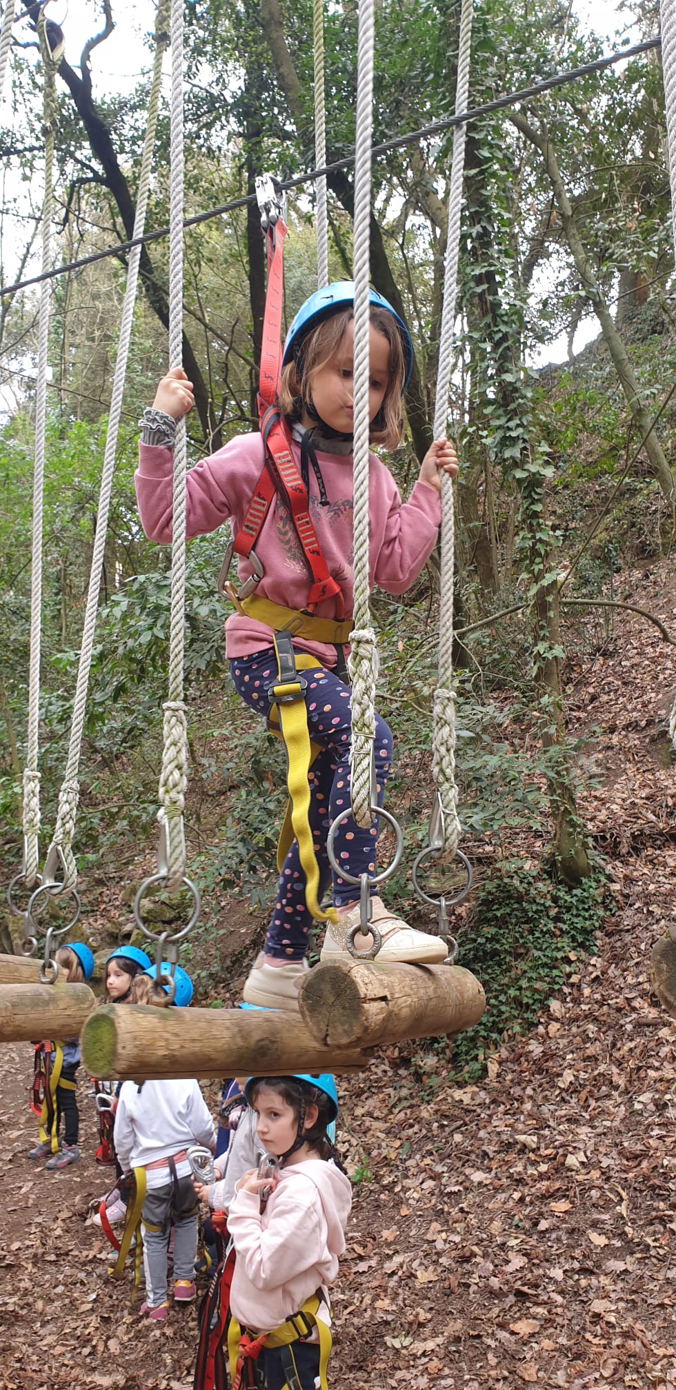 … e nel pomeriggio ci mettiamo alla prova al Bosc del Cel. Con casco e moschettoni, il divertimento è assicurato!