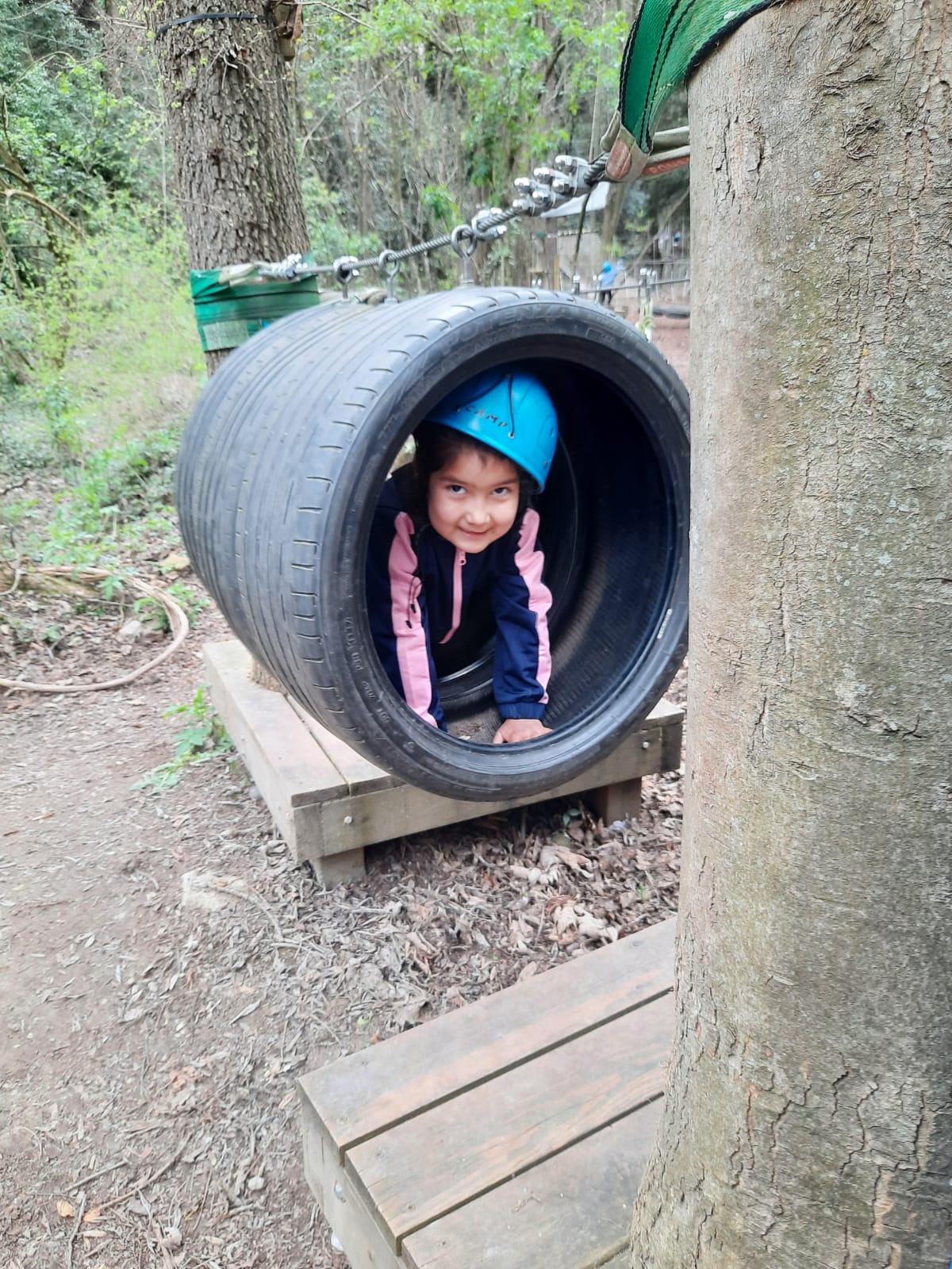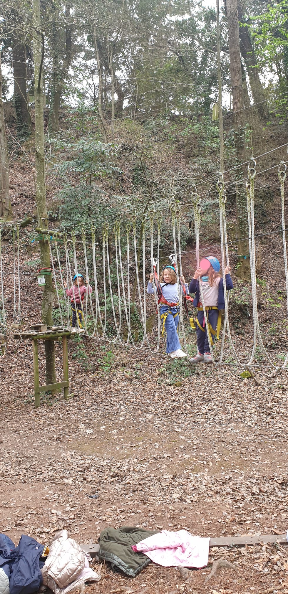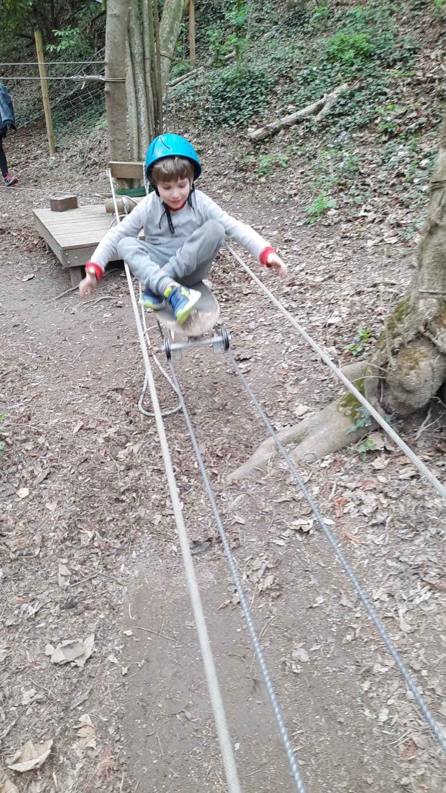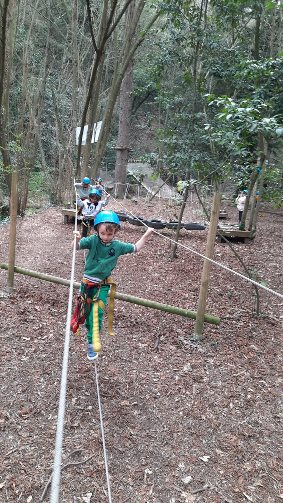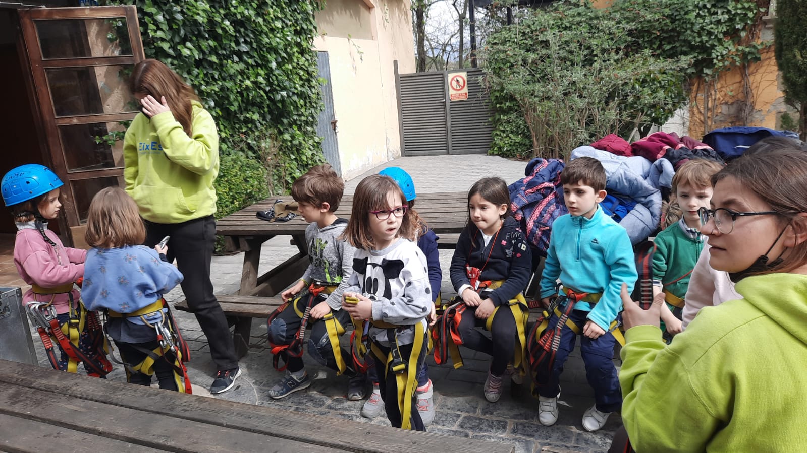 … e nel pomeriggio ci mettiamo alla prova al Bosc del Cel. Con casco e moschettoni, il divertimento è assicurato!