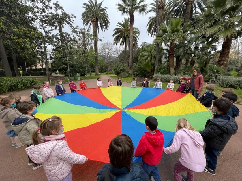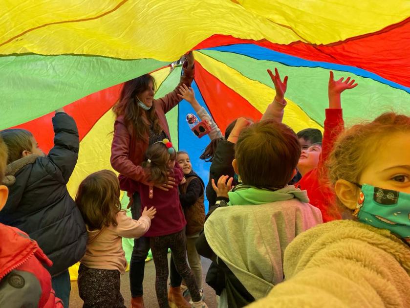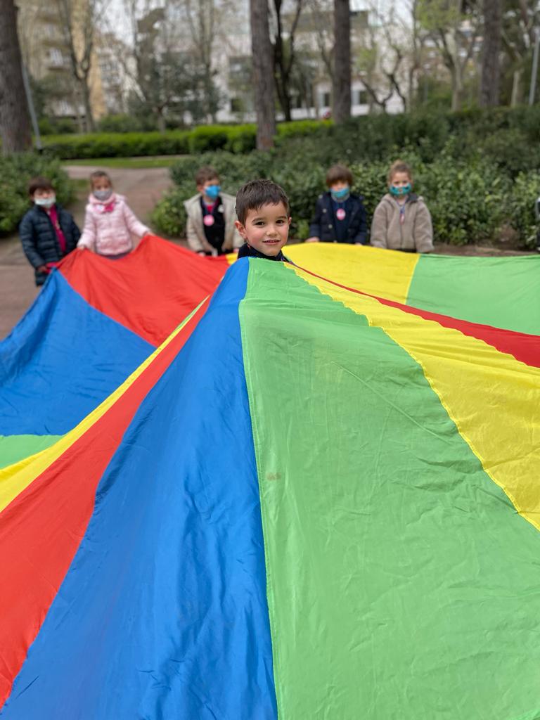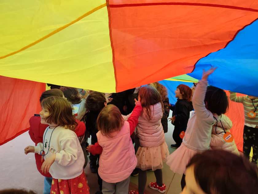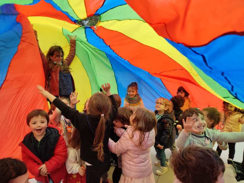 Abbiamo portato con noi il paracadute ludico, strumento utilissimo per stimolare giochi cooperativi di gruppo.