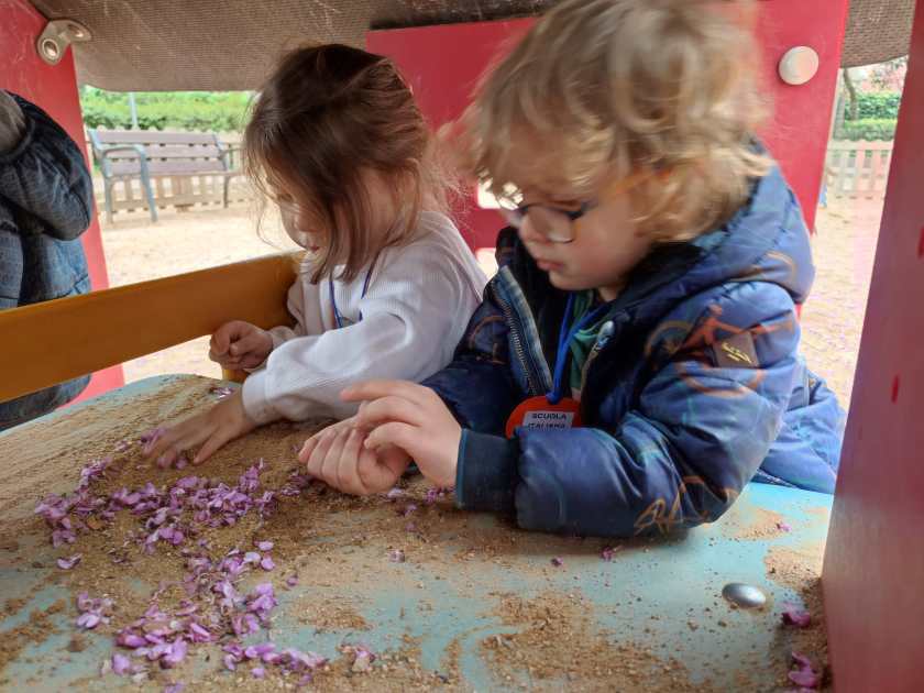 Mentre le bambine e i bambini di 5 anni erano alla Grande Avventura, anche noi di 3 e 4 anni siamo andati in esplorazione, al Parco di Santa Amelia.