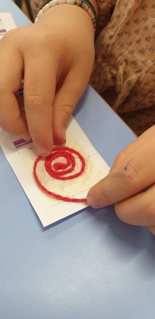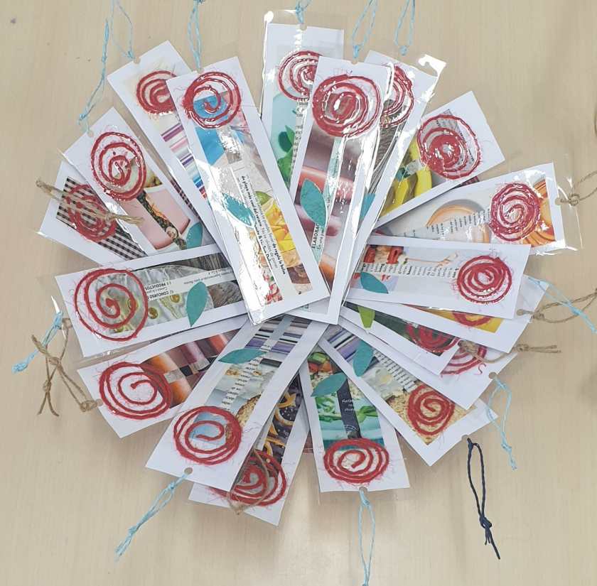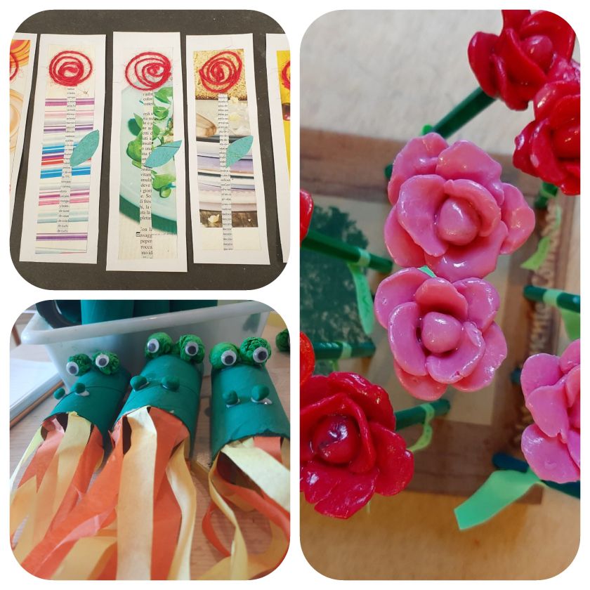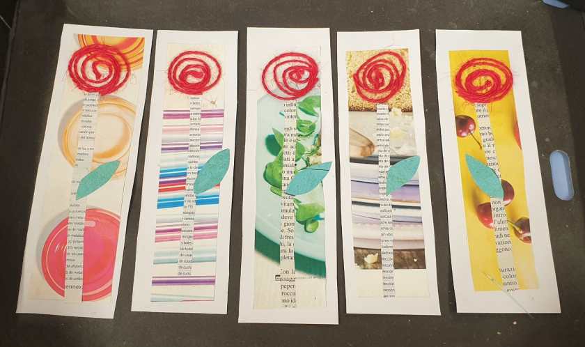 Il motivo della rosa ha ispirato i bambini e le bambine di 5 anni per confezionare il segnalibro con tecnica mista di collage materico.