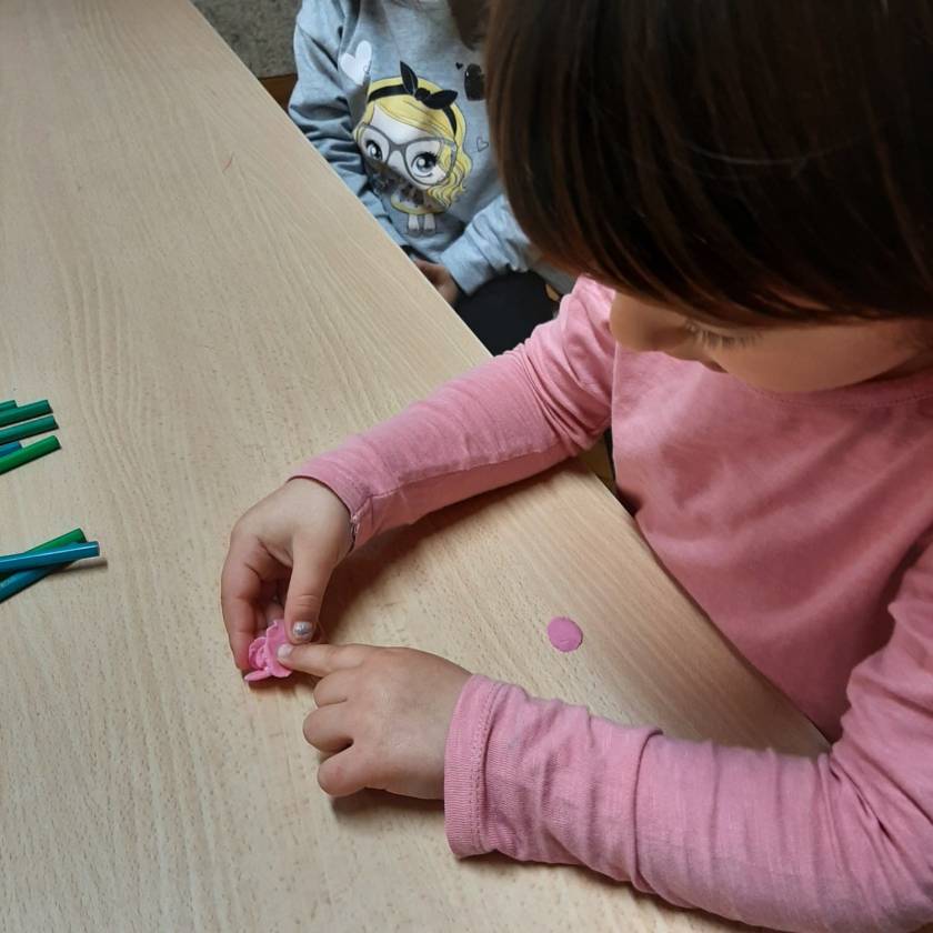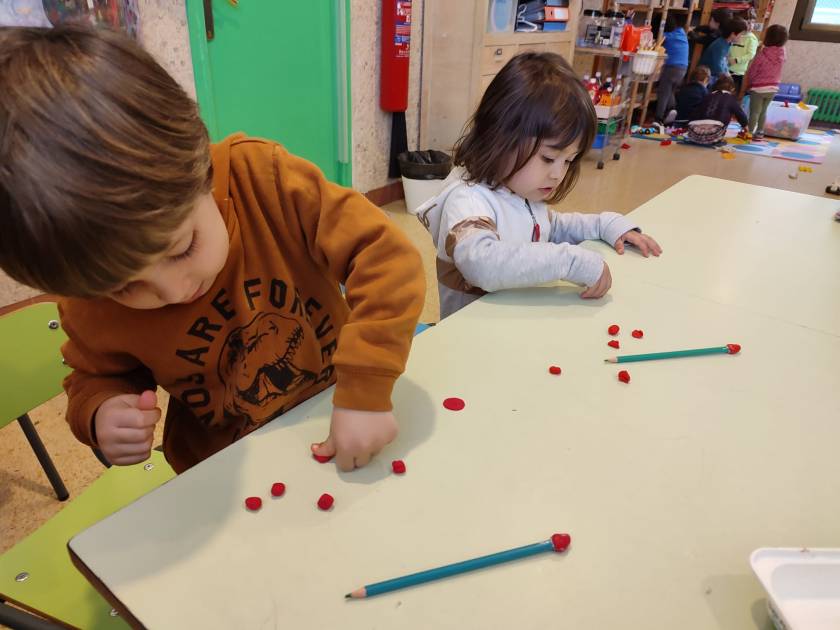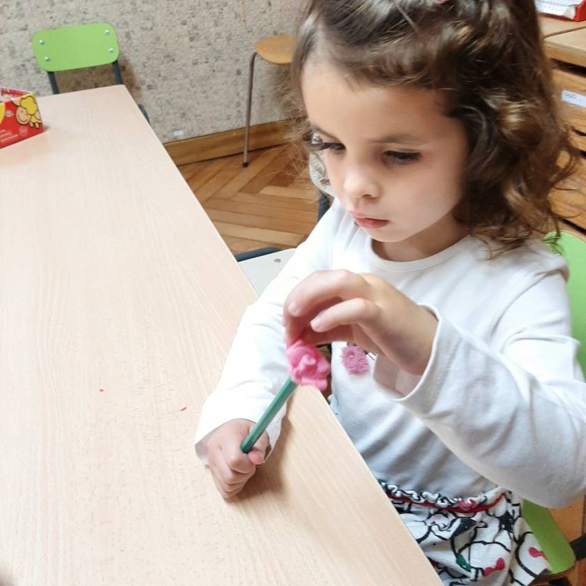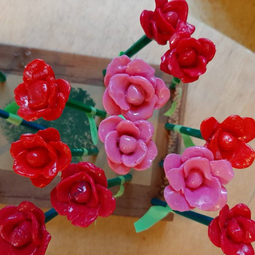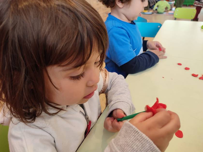 Con la plastilina e molta pazienza i bambini e le bambine di 3 anni hanno modellato i petali delle rose e usando come stelo le matite verdi hanno creato delle bellissime rose rosse e rosa.