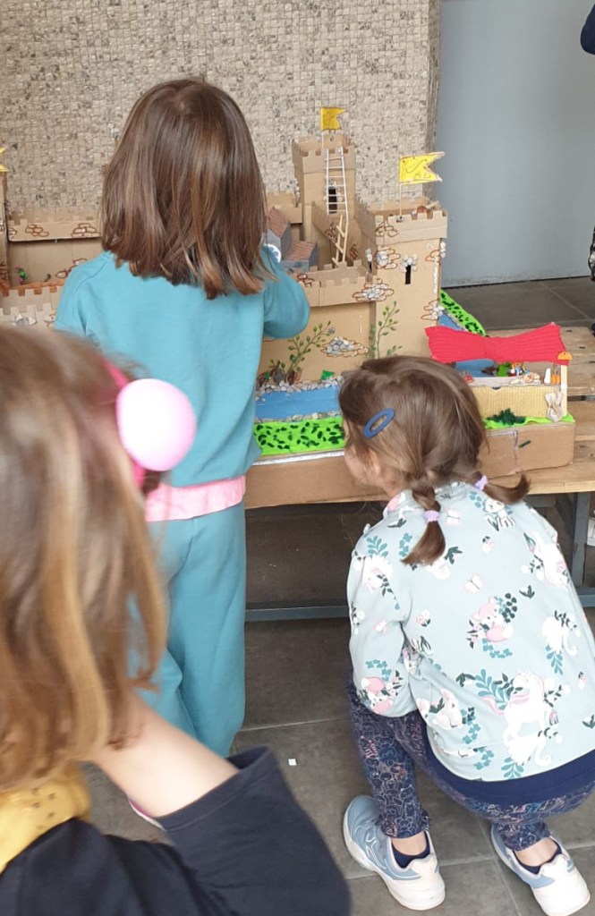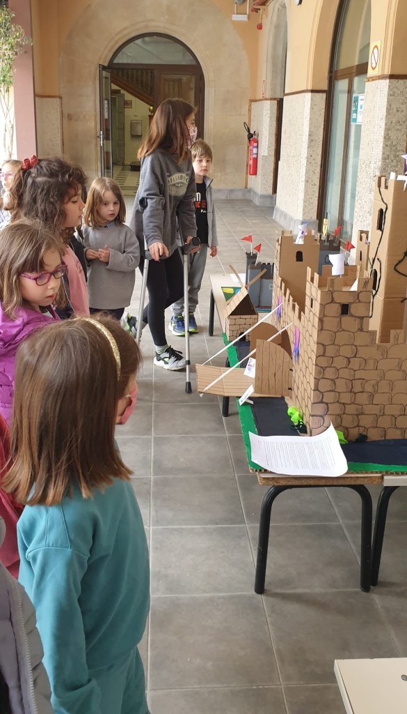 E infine una passeggiata nel cortile della scuola ammirando l’esposizione di castelli delle classi delle medie e un’altra nel quartiere alla ricerca dei simboli della festa di Sant Jordi.