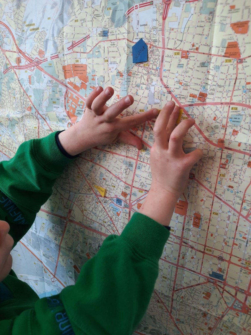 Impariamo a leggere la mappa della nostra città e ad individuare i punti geografici di riferimento, la montagna a nord, il mare a sud, e i due fiumi che scorrono a est e ovest. La proviamo anche a rappresentare su foglio.