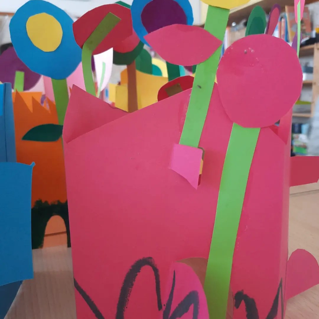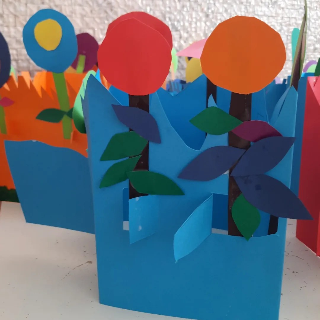 Nella nostra città dei sogni la natura prende il sopravvento su tutto e così, magicamente, grazie alla fantasia e alle mani operose dei bambini e delle bambine di 4 anni, piante e fiori crescono dappertutto, anche dentro le case e fuoriescono da porte e finestre.