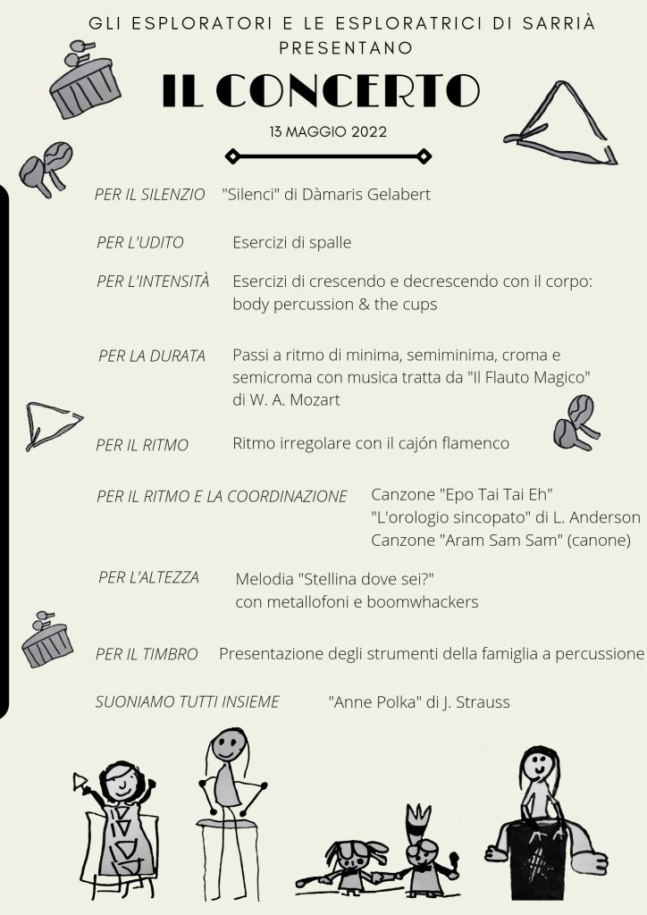 I bambini e le bambine di 5 anni, diretti dalla maestra Maria, hanno organizzato per le famiglie un concerto in cui hanno potuto dimostrare gli apprendimenti raggiunti a conclusione del percorso musicale “Esplorando i suoni”.