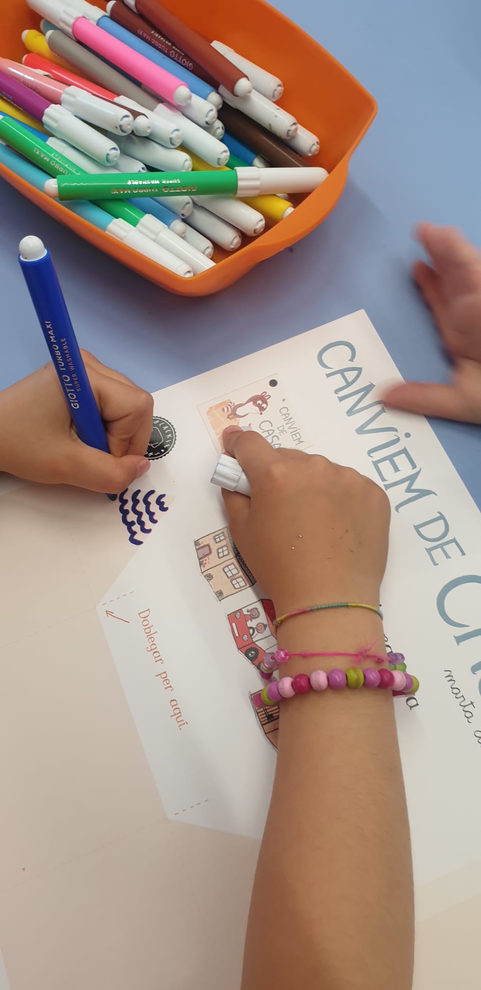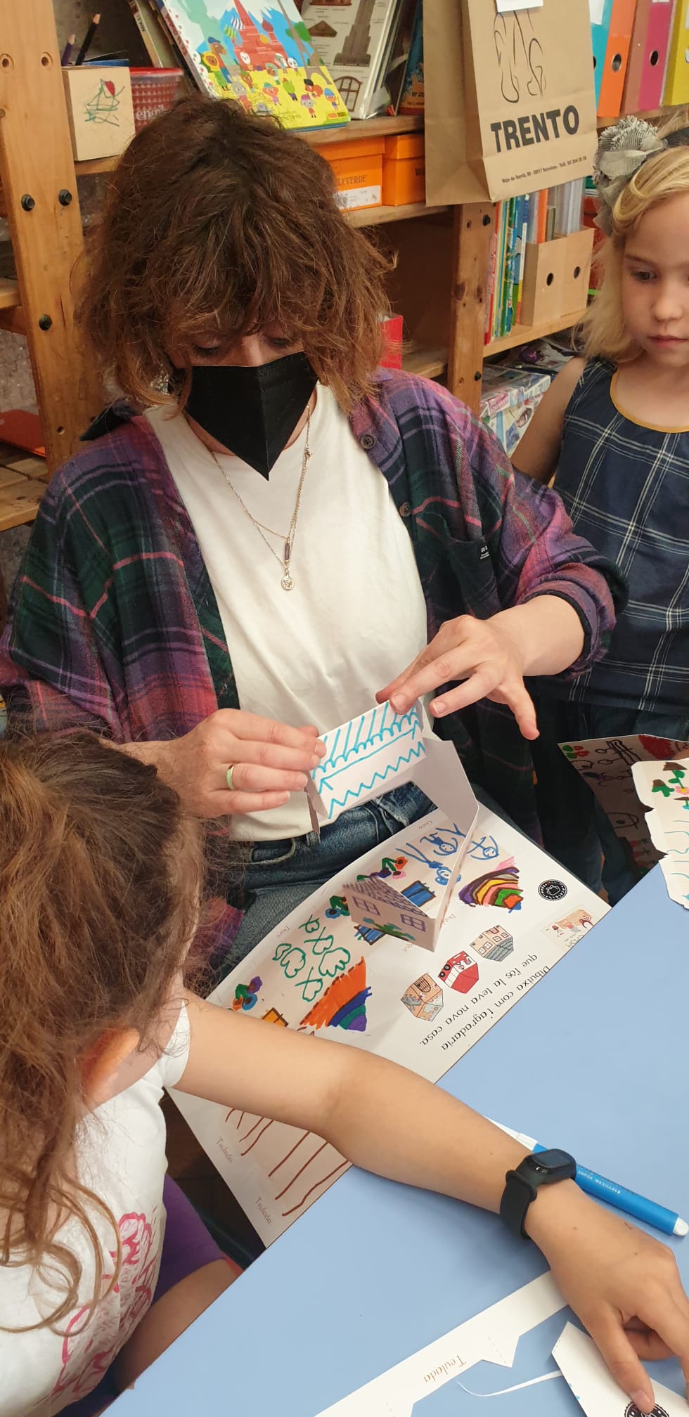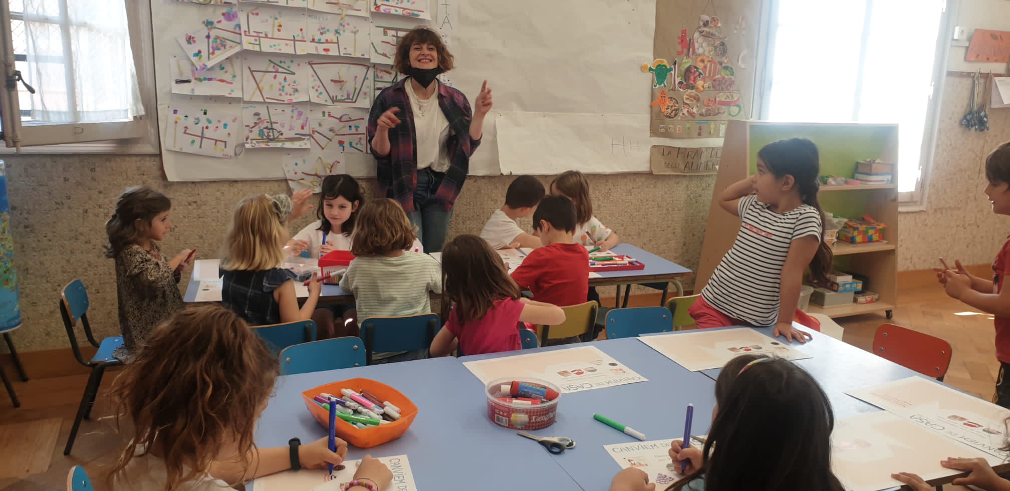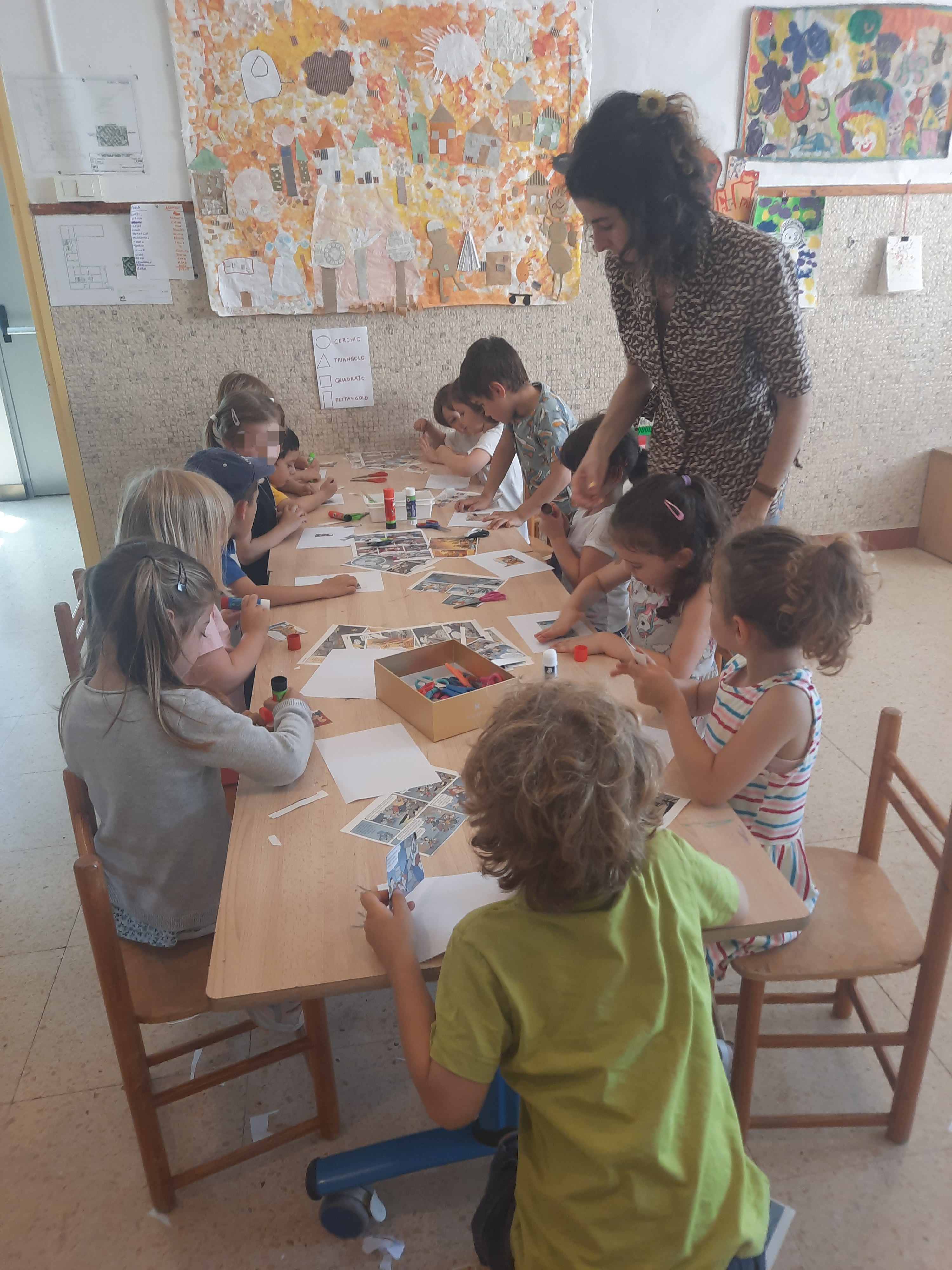 Il gruppo dei 5 anni ha ricevuto la visita di mamma Alice che ha letto il racconto Canviem de casa di Marta Altés e proposto la costruzione di casette personalizzate di cartone usate successivamente per ideare un gioco simbolico sulla città.