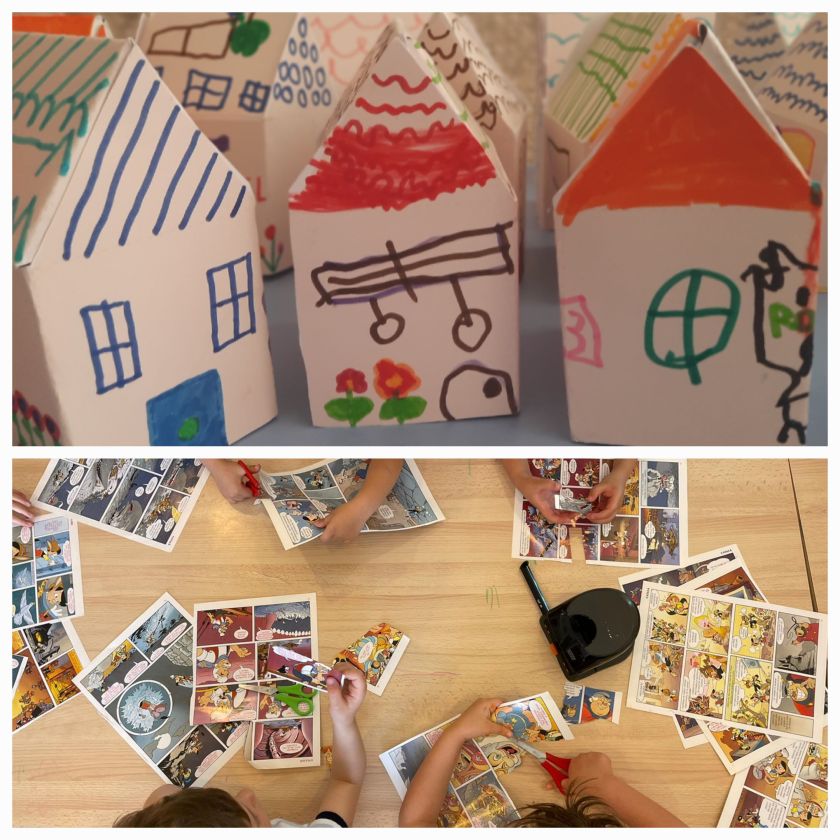 Il gruppo dei 5 anni ha ricevuto la visita di mamma Alice che ha letto il racconto Canviem de casa di Marta Altés e proposto la costruzione di casette personalizzate di cartone usate successivamente per ideare un gioco simbolico sulla città.