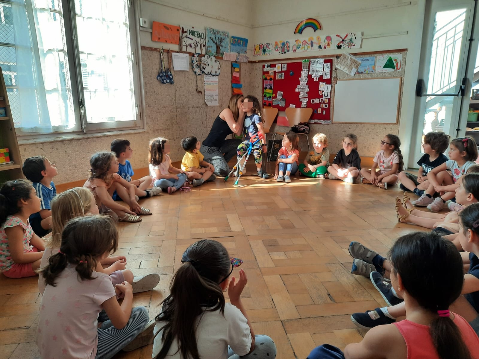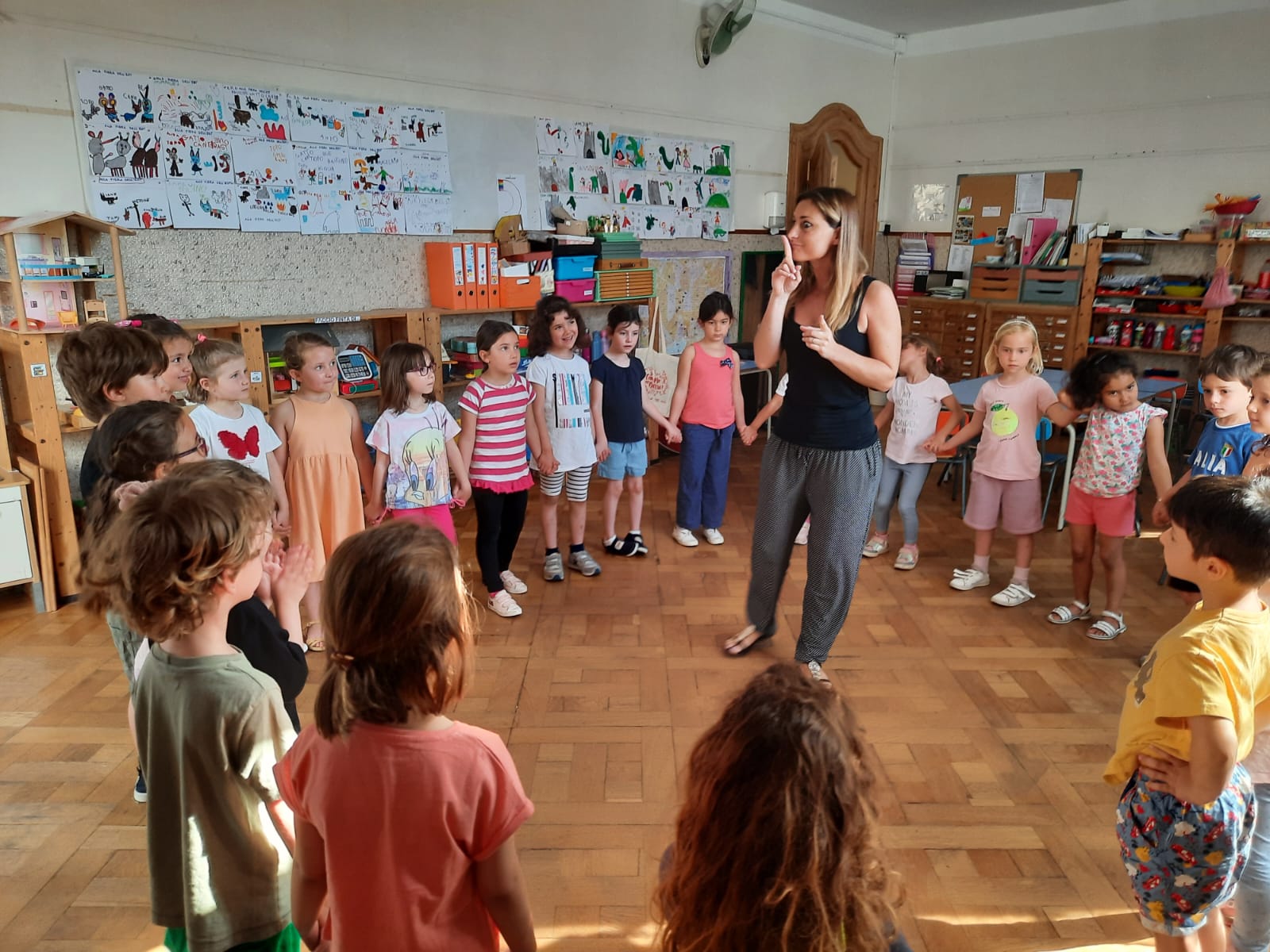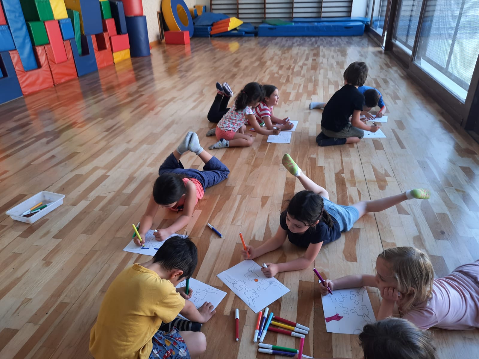 Nell’ambito del progetto “Famiglie a scuola” oggi é venuta Mariarosaria, mamma di una nostra bambina di 5 anni. Ha proposto vari giochi tradizionali e cooperativi, il gioco del telefono senza fili, il gioco delle isole, il gioco delle sedie, il paracadute ludico, il gioco dei palloncini… infine ci siamo rilassati e abbiamo colorato insieme!