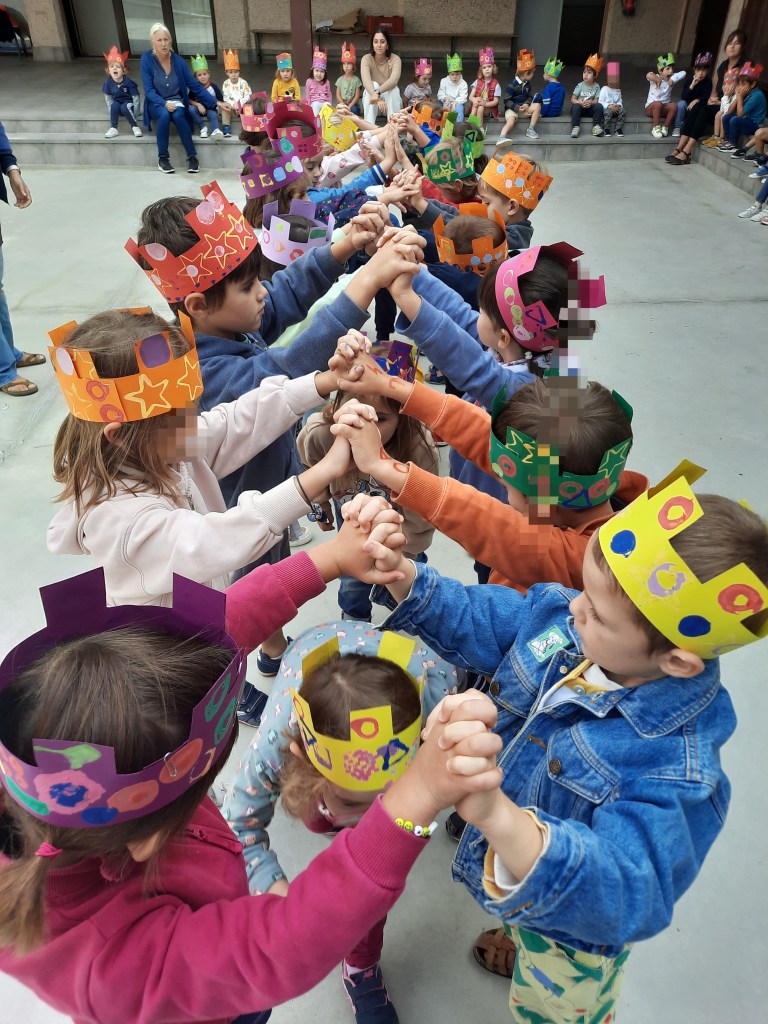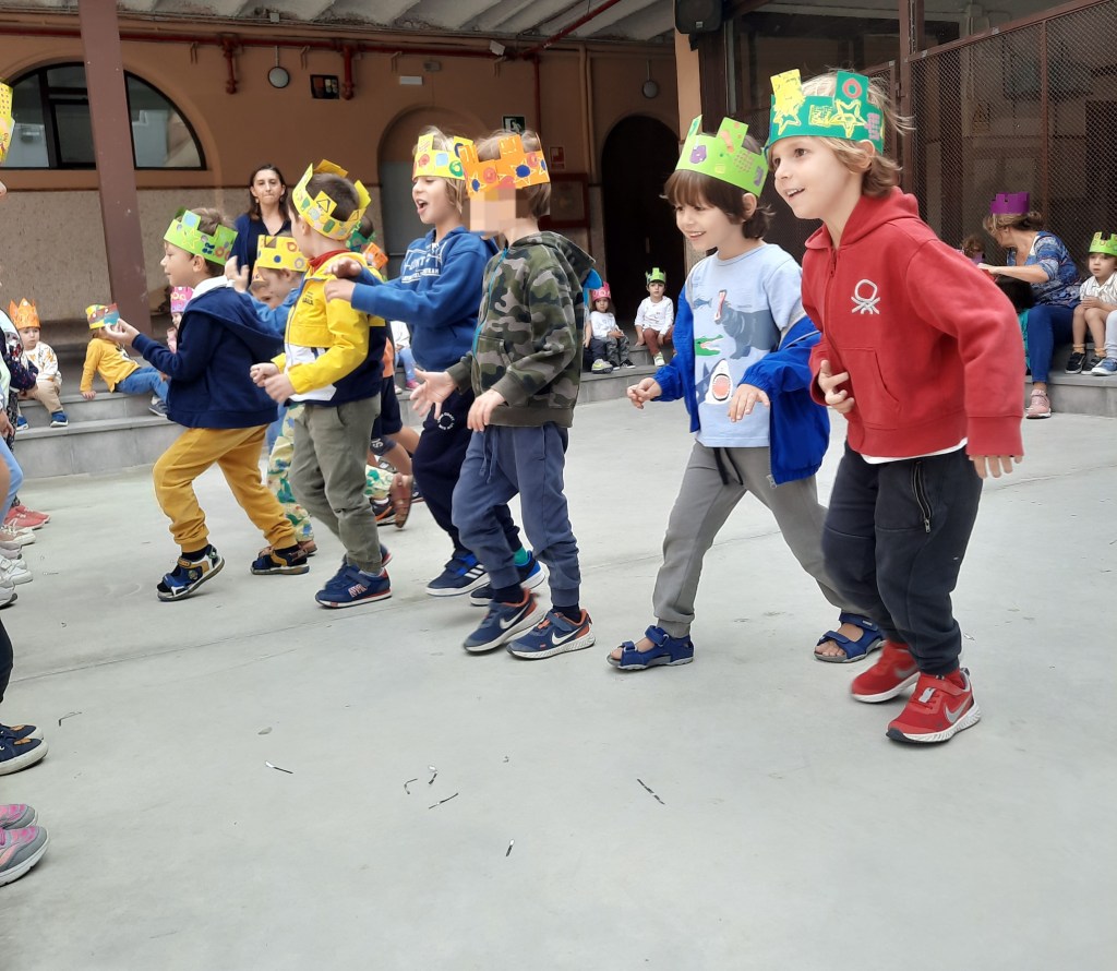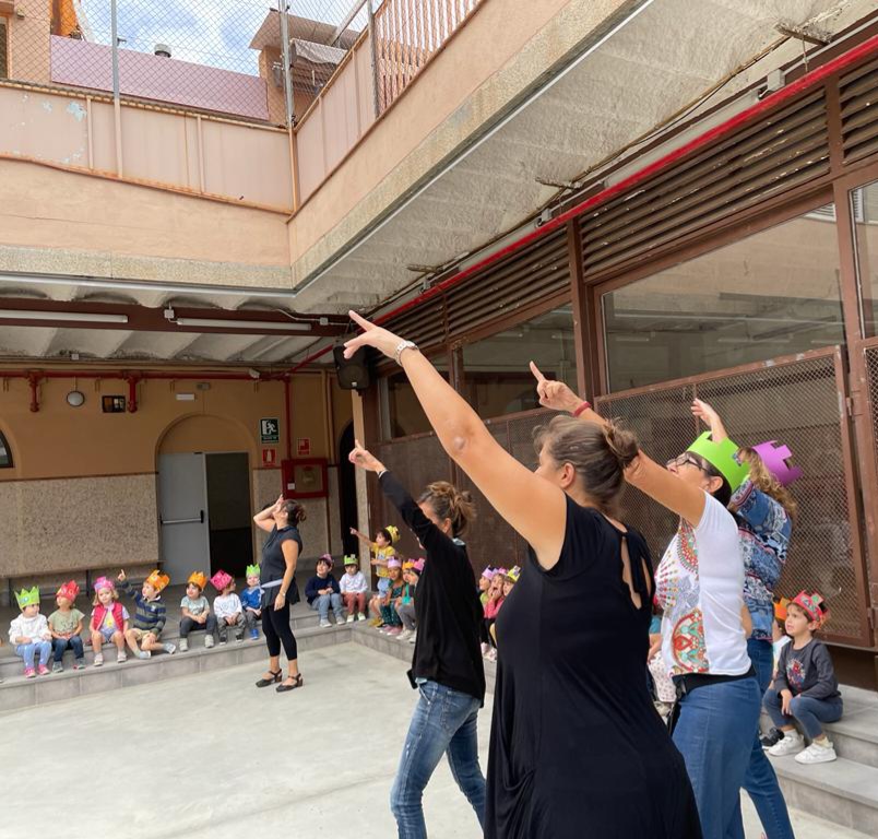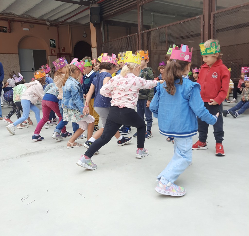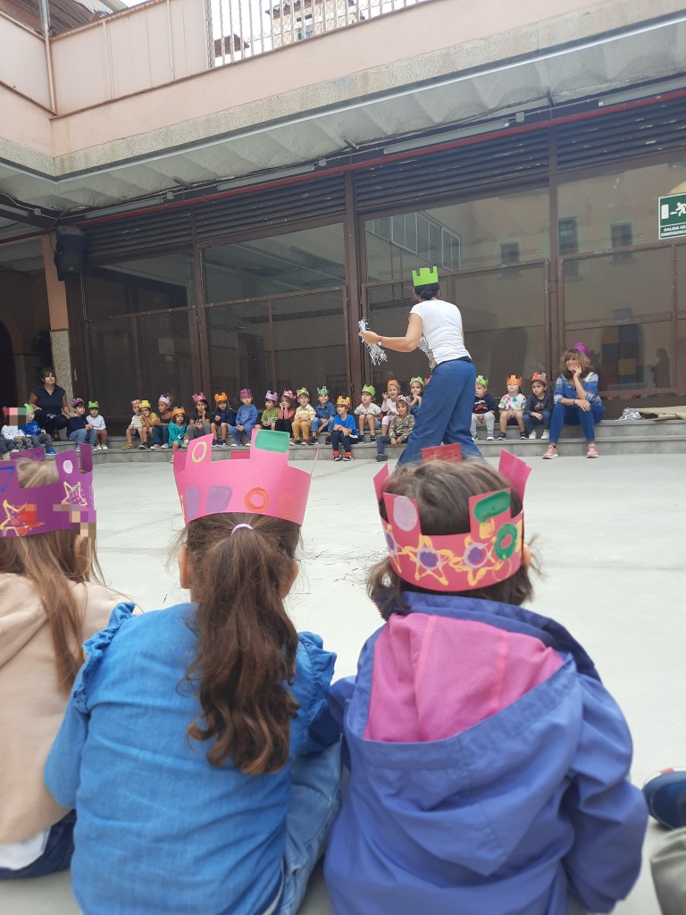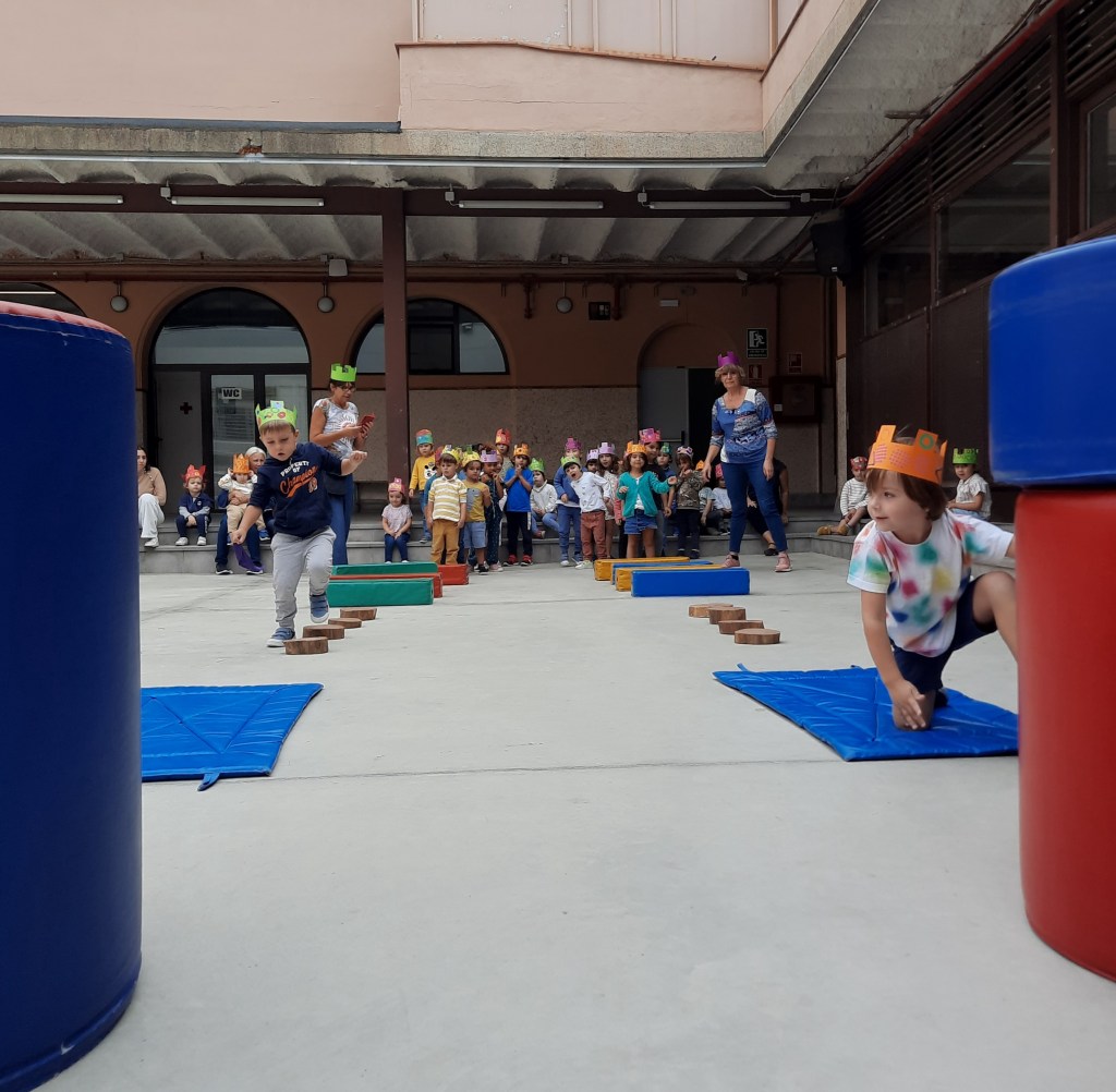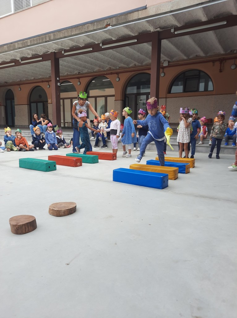Oggi noi bambini e bambine della scuola dell’infanzia abbiamo organizzato la nostra consueta Festa della Mercè, con tanto di corone, musiche medievali e tradizionali, balli e giochi di abilità. I 3 anni si sono esibiti nel lancio delle palline di fuoco, i 4 anni in un percorso di abilità e i 5 anni in una danza tradizionale.