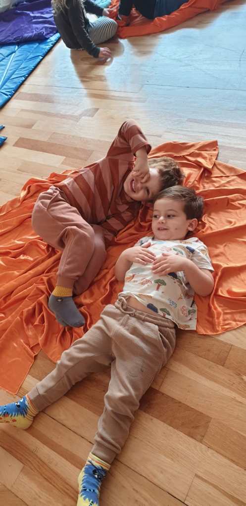Il momento finale é dedicato al riordino e al rilassamento con la musica e i teli.