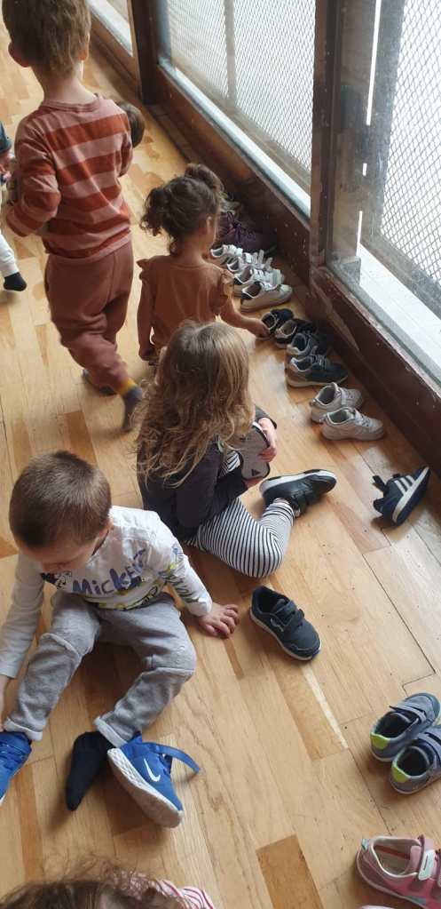 Per prima cosa, mettiamo i calzini ed ascoltiamo e impariamo le regole per poter giocare senza farsi male e rispettando il gioco degli altri.