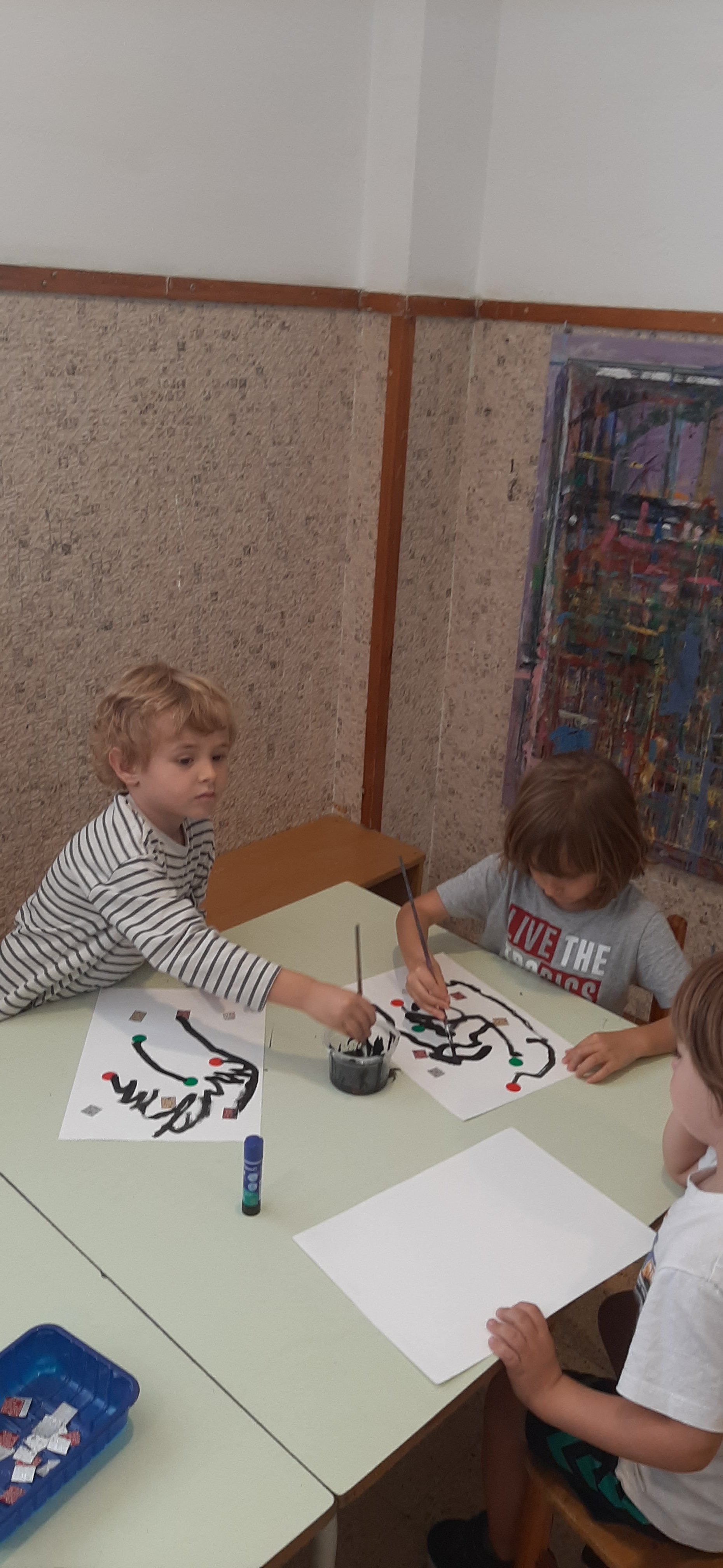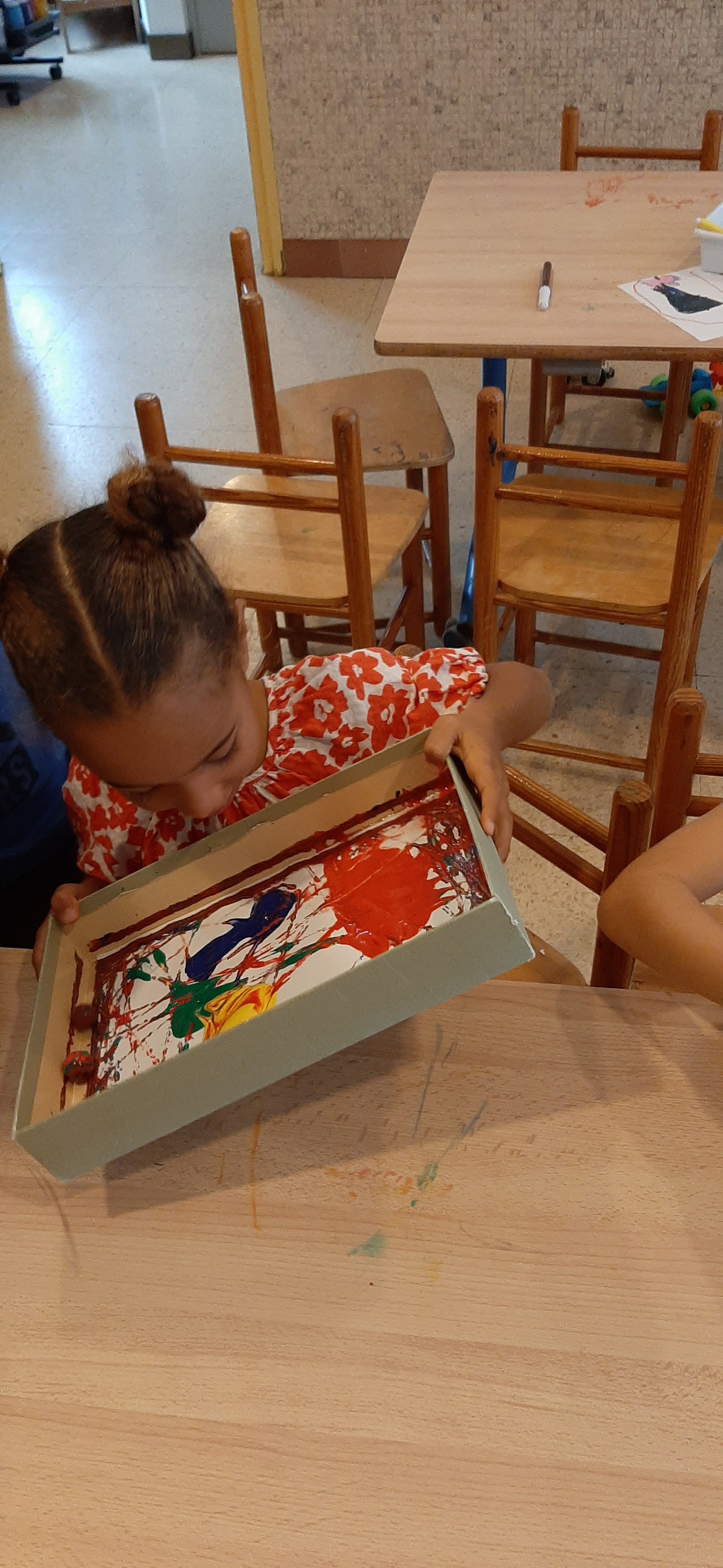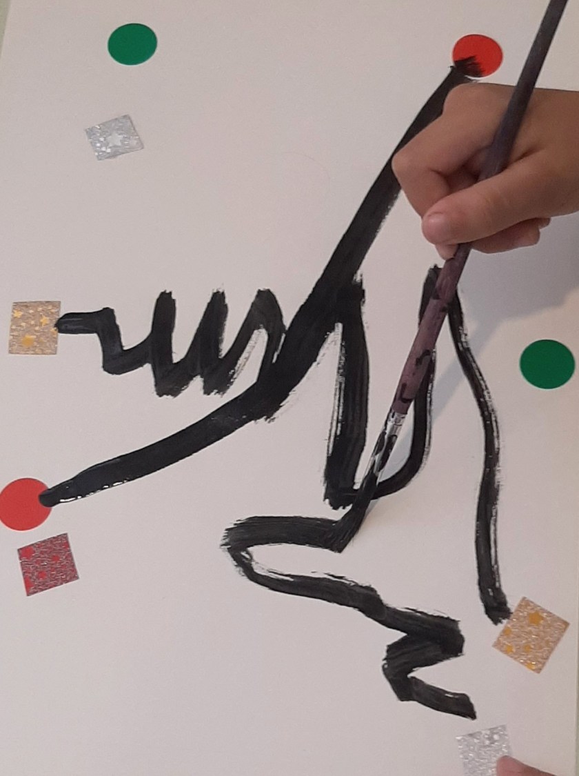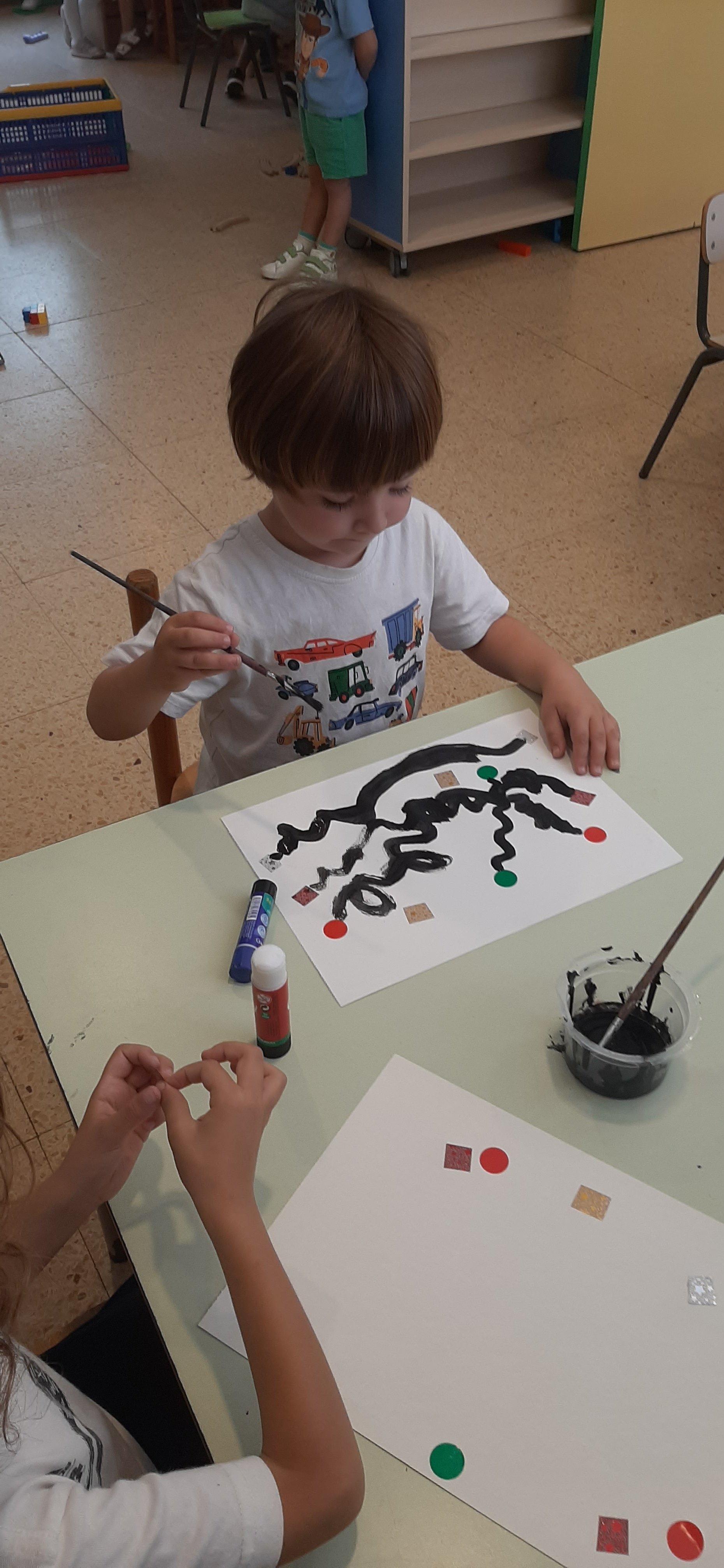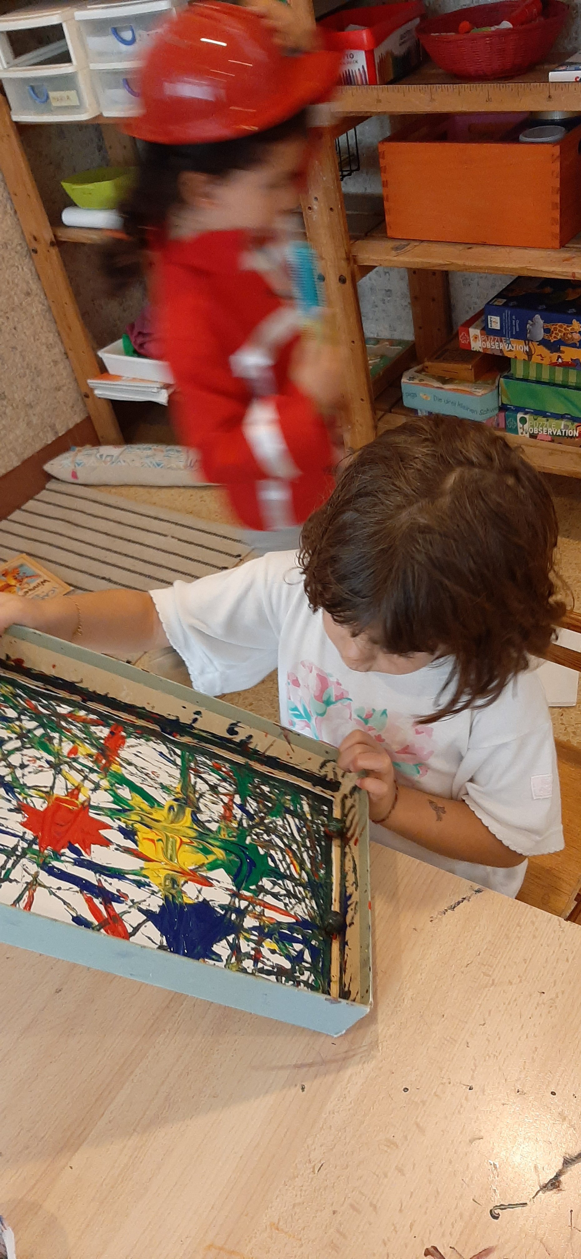 Giochiamo con la pittura e le biglie. Facciamo muovere le palline di vetro su un foglio ed osserviamo le tracce colorate di pittura che lasciano su. Guidiamo i movimenti delle biglie in alto, in basso, a destra, a sinistra ed in senso rotatorio. Notiamo come ad ogni nostro movimento, corrisponda sul foglio una scia distinta.
