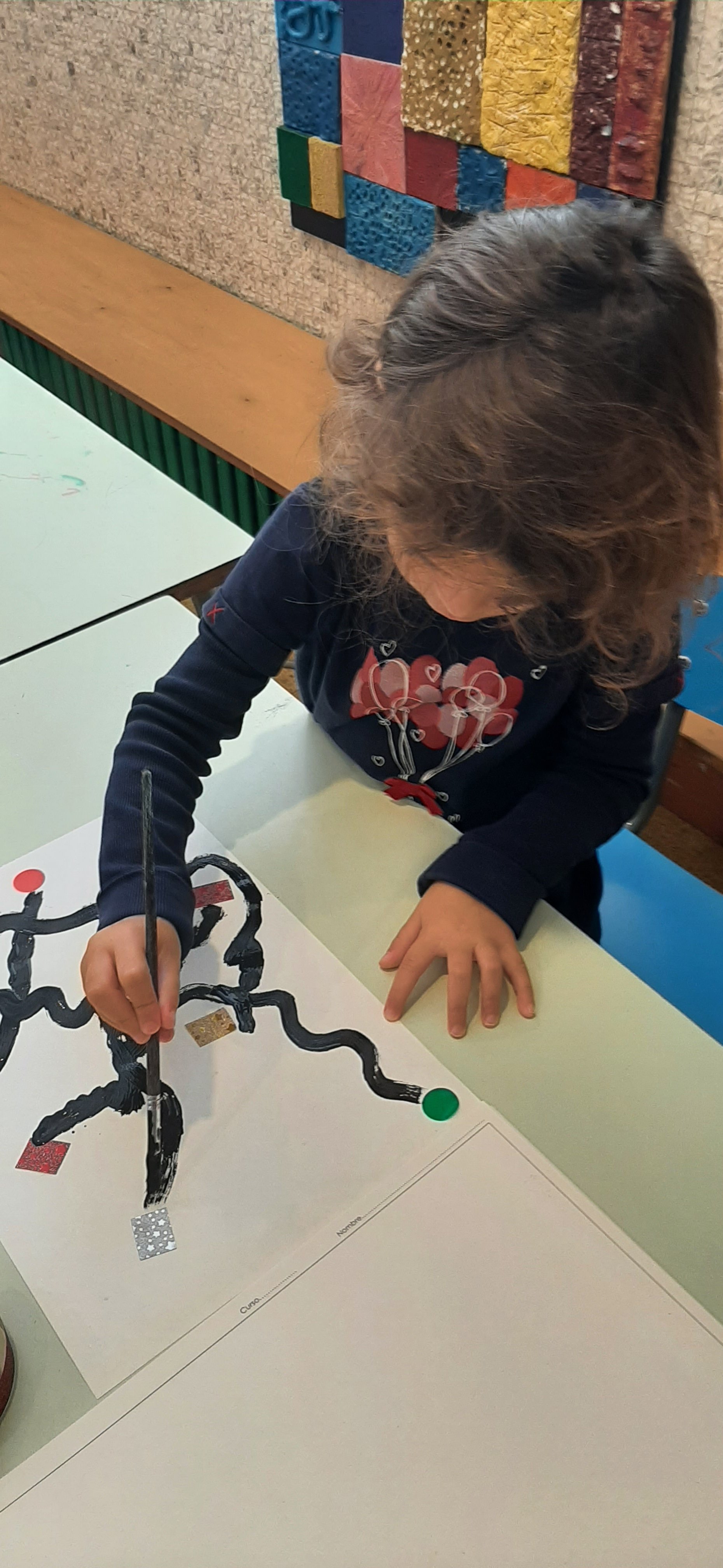 Ma quante linee si formano!!! Ognuna ha un punto di partenza e di arrivo. Ci possono essere linee rette, ondulante, a zig zag. Ci inventiamo quindi un nuovo gioco, unendo con tante linee dei punti corrispondenti. Ed ecco qui le nostre tracce!!!