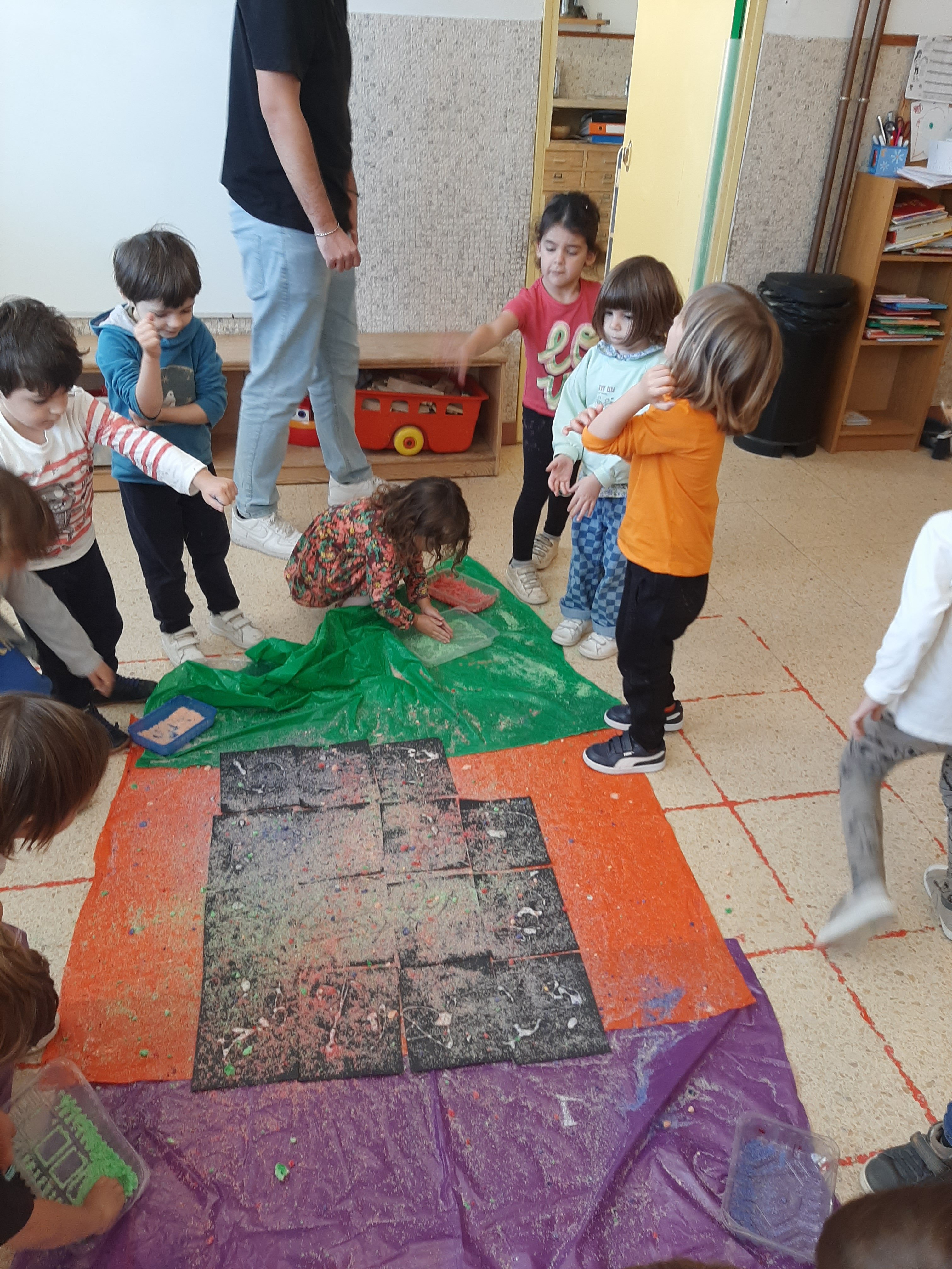 Quindi abbiamo cercato informazioni. Guardando libri e vídeo che parlavano dell’argomento, abbiamo scoperto che si pensa che milioni di anni fa ci fu il Big Bang, cioé la grande esplosione, che con la sua energía, creó l’universo con stelle, pianeti, nebulose, asteroidi etc, cosi come lo conosciamo oggi. Affascinati da come sia avvenuta l’origine del cosmo, abbiamo provato a ricreare il Big Bang, mettendo tutta la nostra energía e divertendoci tanto!