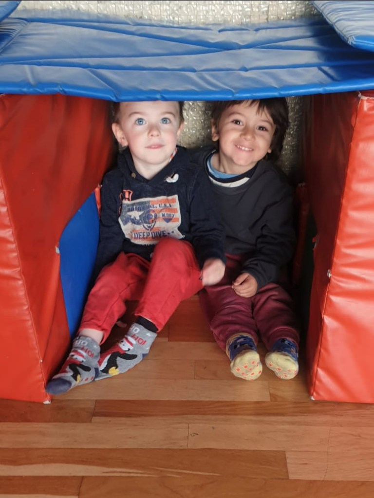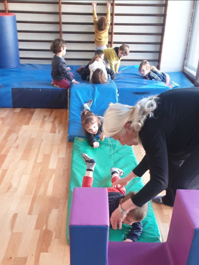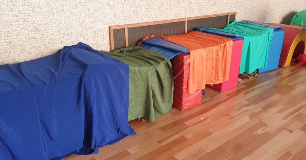 Ed in palestra diventiamo tutti piccoli coniglietti che, seguendo un percorso motorio, raggiungono le loro tane!