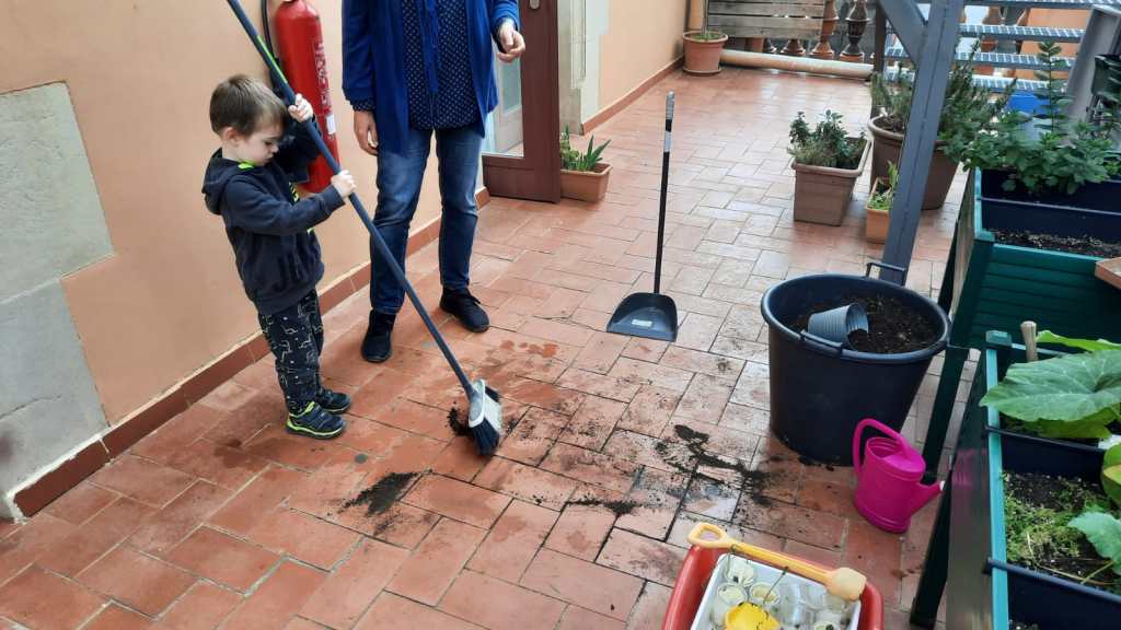 Poi trapiantiamo con cura i germogli dei fagioli e delle lenticchie, mettendo la terra nel vaso, sistemandoli con cura e innaffiandoli. Infine, terminato il lavoro, si pulisce per bene.