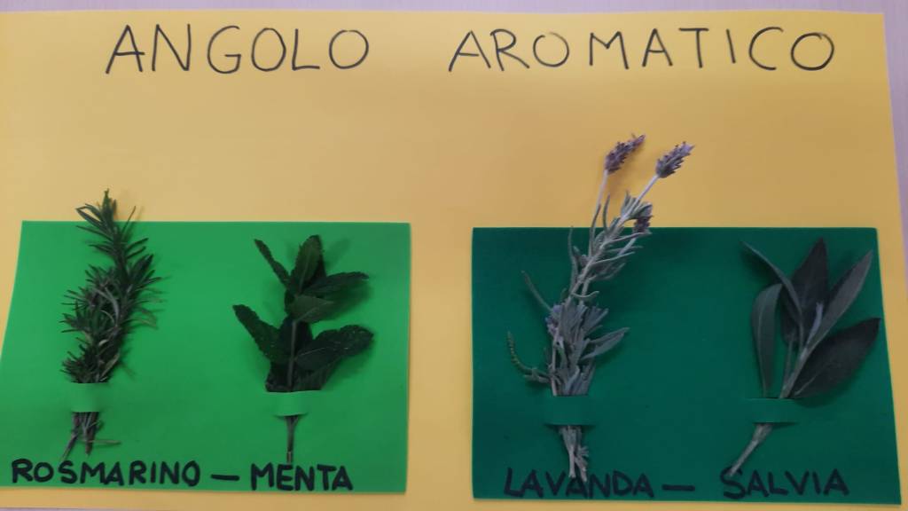 Il profumo delle piante aromatiche ci accoglie, osserviamo ed odoriamo le foglie, tutte diverse, piccole e grandi, allungate o tondeggianti, verdi ma ognuna con la propria tonalità.