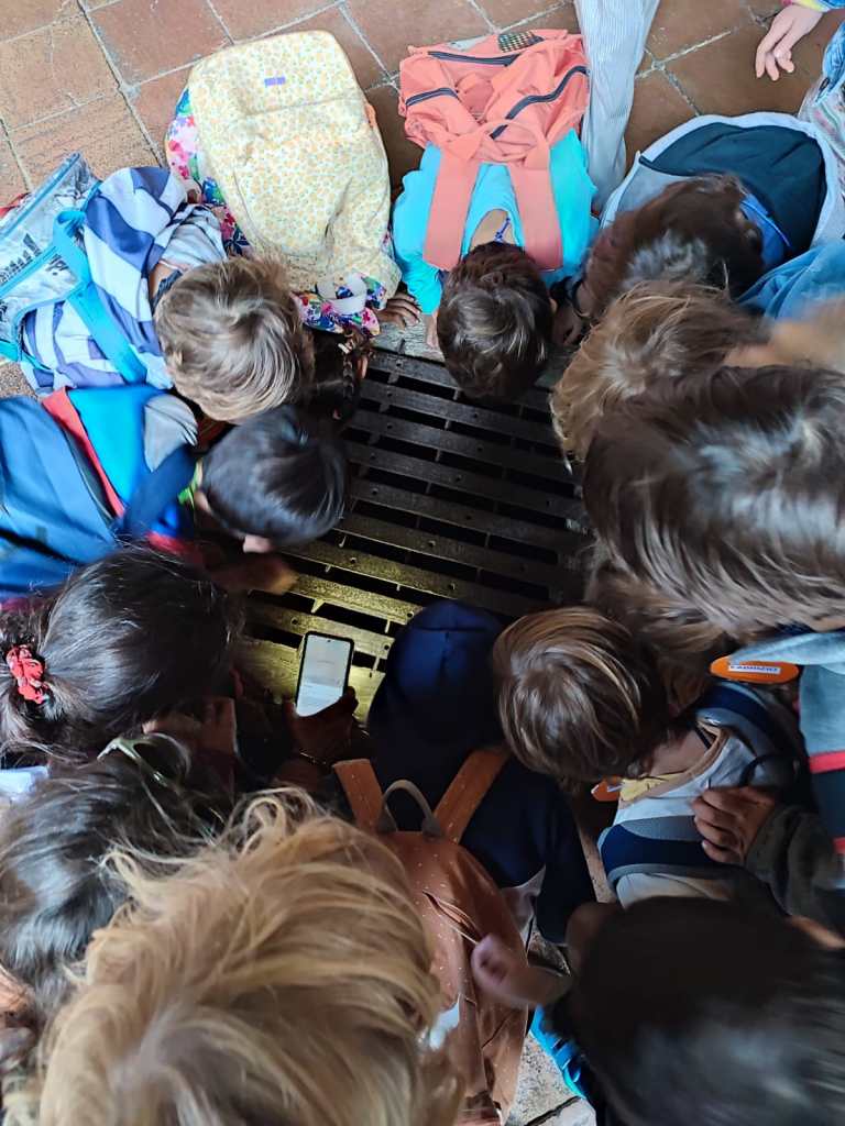 Una sacca apparentemente abbandonata ci ha lasciati interdetti. Qualcuno l’aveva forse dimenticata? Una scritta indicante che era per noi ci ha tolto ogni dubbio: dentro, abbiamo trovato un mappamondo, due libri di case e scuole del mondo, delle boccette colorate. Nessuna traccia della strabussola scombussolata, ma si tratta sicuramente di un indizio lasciato da Raimondo