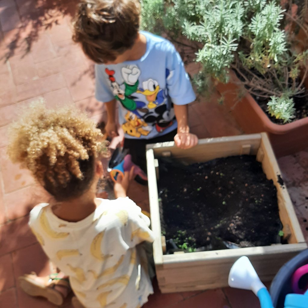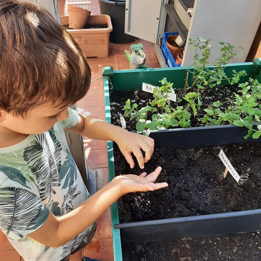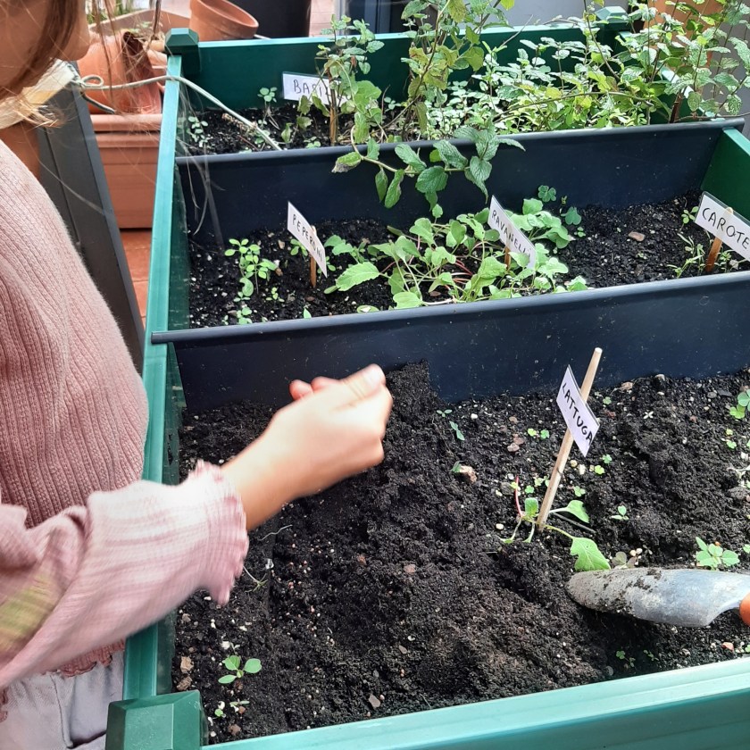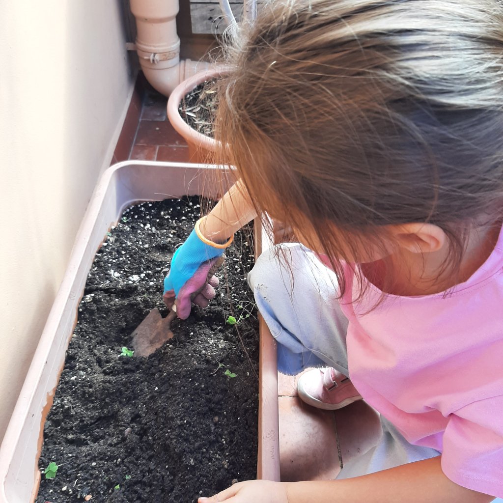 Con i bambini e le bambine del gruppo dei 5 anni ci dedichiamo a curare l’orto di scuola. Ripuliamo la terra da erbacce e da radici, dissodiamo ed aggiungiamo humus, prepariamo il terreno per la semina. Piantiamo carote, ravanelli, lattughe, basilico, prezzemolo, bulbi di tulipani, fiori ed altro. Con tanta attenzione innaffiamo la terra ed aspettiamo che il semini inizino il loro viaggio del ciclo vitale. Che impazienza!!!!Ma sembra giá che i ravanelli e le carote stiano mostrando le prime foglioline!!! Aspetteremo e continueremo a curare le nostre piantine….