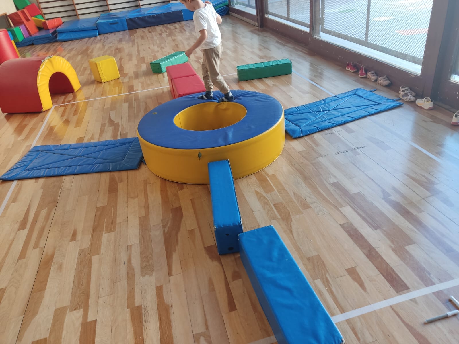 In palestra, nel frattempo, lavoriamo sui percorsi. Con in mano le indicazioni per cercare la bussola al Monestir de Pedralbes, abbiamo ricostruito la mappa con i blocchi morbidi e abbiamo seguito le vie percorribili.