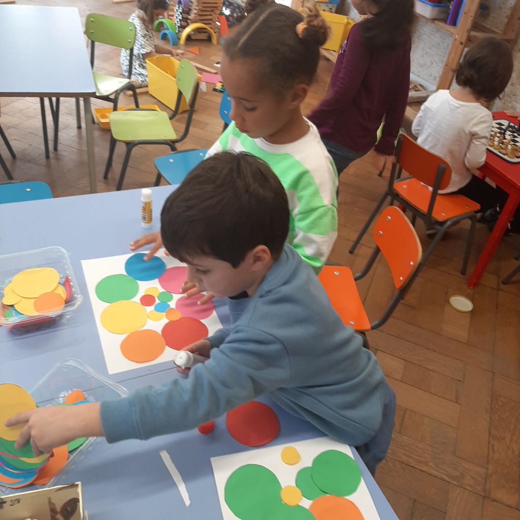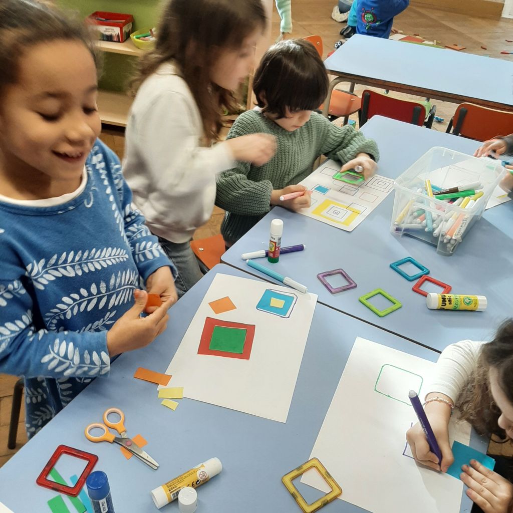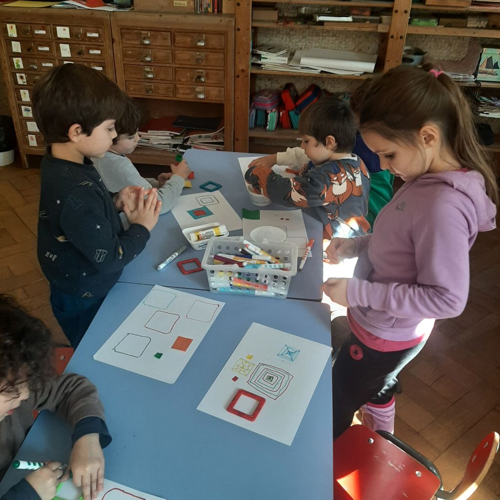 Sempre seguendo un approccio ludico, abbiamo continuato a scoprire la bellezza della logica e della matematica. Abbiamo giocato con le figure piane, ispirandoci a Piet Mondrian o a Hervé Tullet abbiamo ricreato forme geometriche buffe, come il Signor Triangolo.