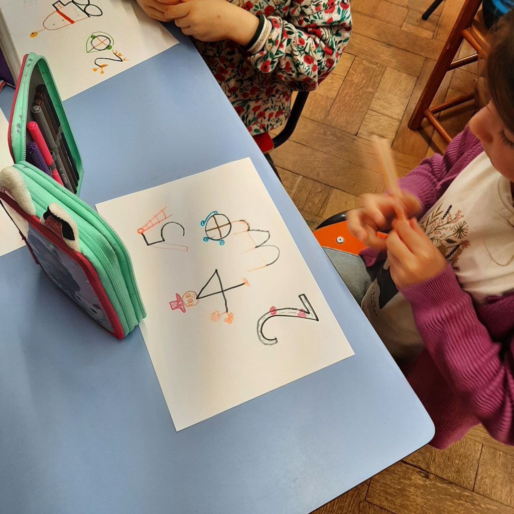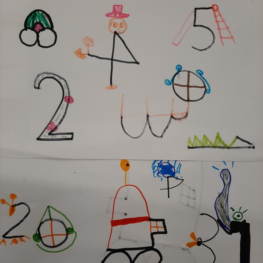 Il calendario in classe ed il conteggio giornaliero dei bambini assenti e presenti hanno tenuto allenate le nostre menti al ragionamento numerico. Abbiamo lavorato sulla lateralitá, sulla destra e sinistra, sui concetti di dentro e fuori e sopra e sotto. Sono state fatte attivitá propedeutiche di topografía e orientamento spaziale sul foglio. Ascoltando il divertente racconto di Gianni Rodari ” A inventare i numeri”, ci siamo divertiti a disegnare i numeri trasformandoli in cose, persone o animaletti.