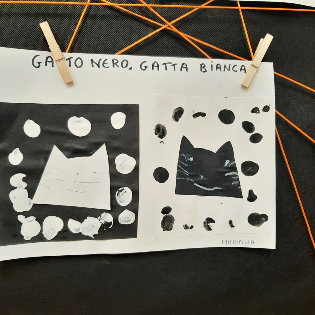La dolce storia di “Gatto nero, gatta bianca”, narrata da Silvia Borando, ci porta nel mondo degli opposti e dei contrari. Scopriamo due gatti dalle sembianze ed abitudini totalmente differenti, che un giorno, per curiositá, decidono di vedere cosa c’é oltre quello che conoscono da sempre. Cosí, inaspettatamente, nasce un incontro che dá origine ad una bella storia d’amore e di amicizia. La contrapposizione tra i colori bianco e nero, diventa lo spunto per giocare con questi colori primari e creare dei bellissimi gatti bianchi o neri.