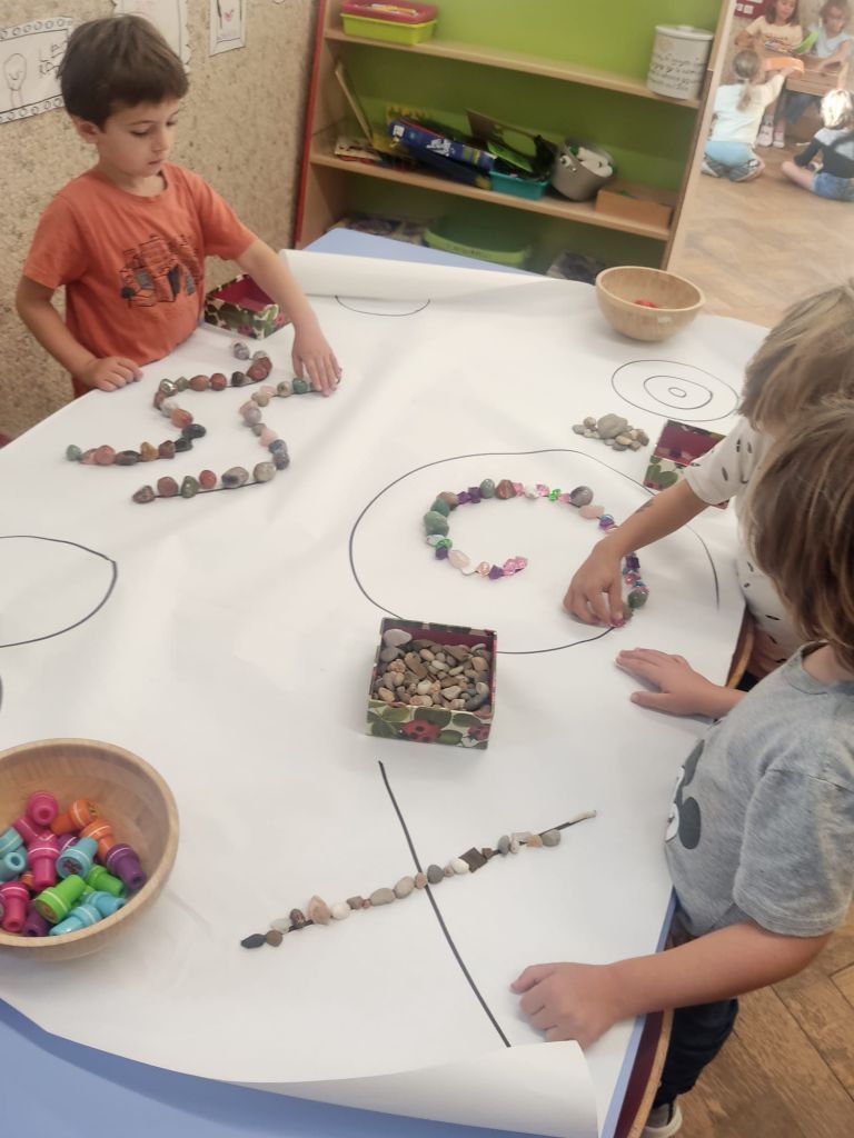 Seguiamo le linee dei grafismi con i sassolini.