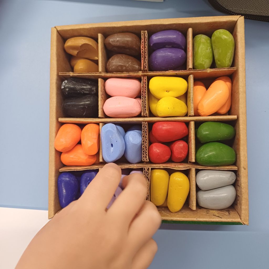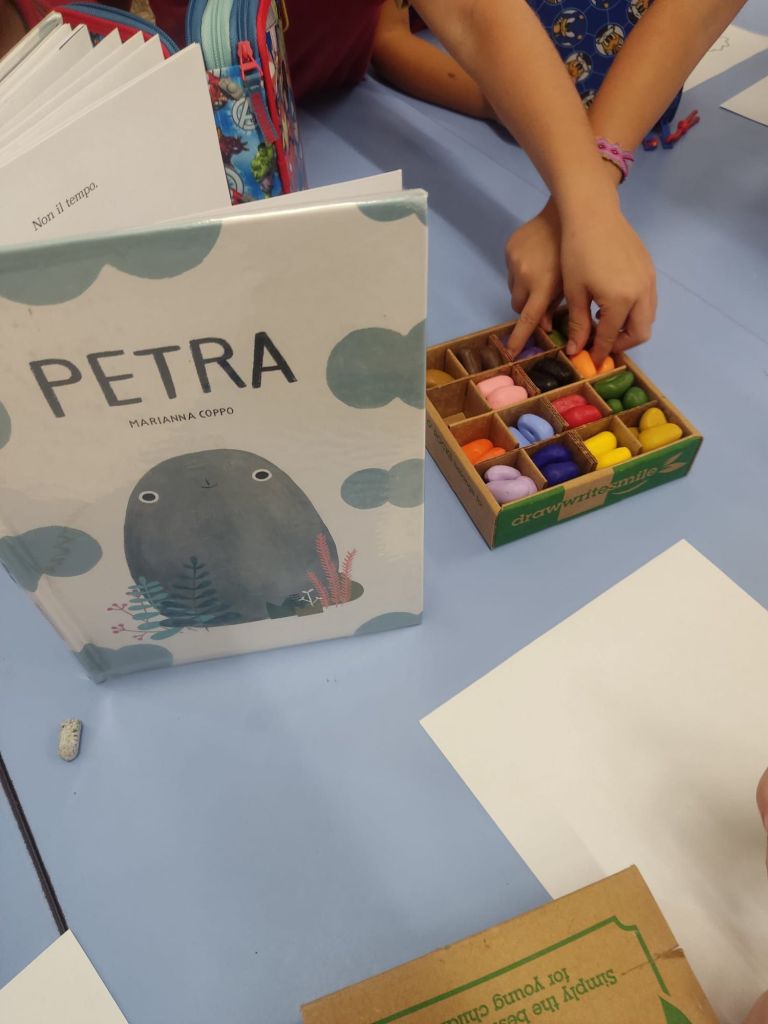 Rappresentiamo la storia con i pastelli a forma di sasso.