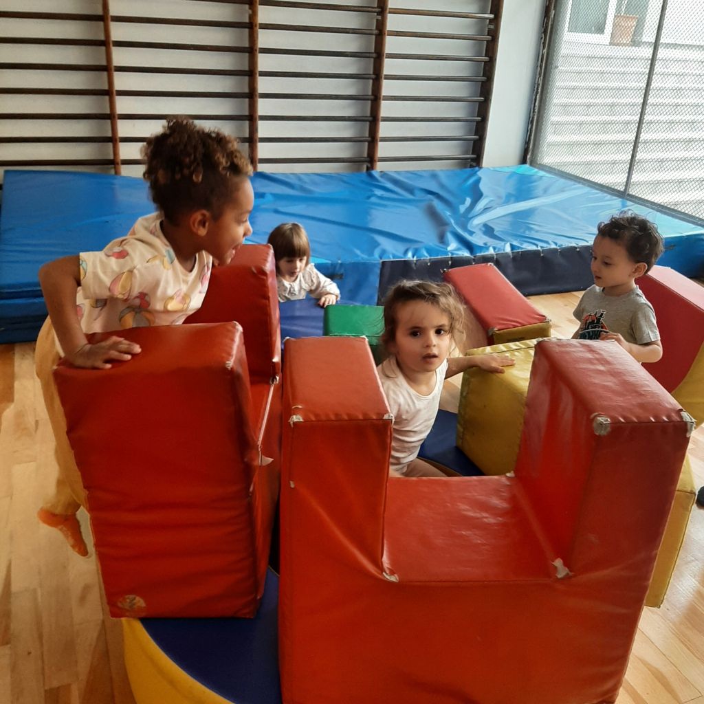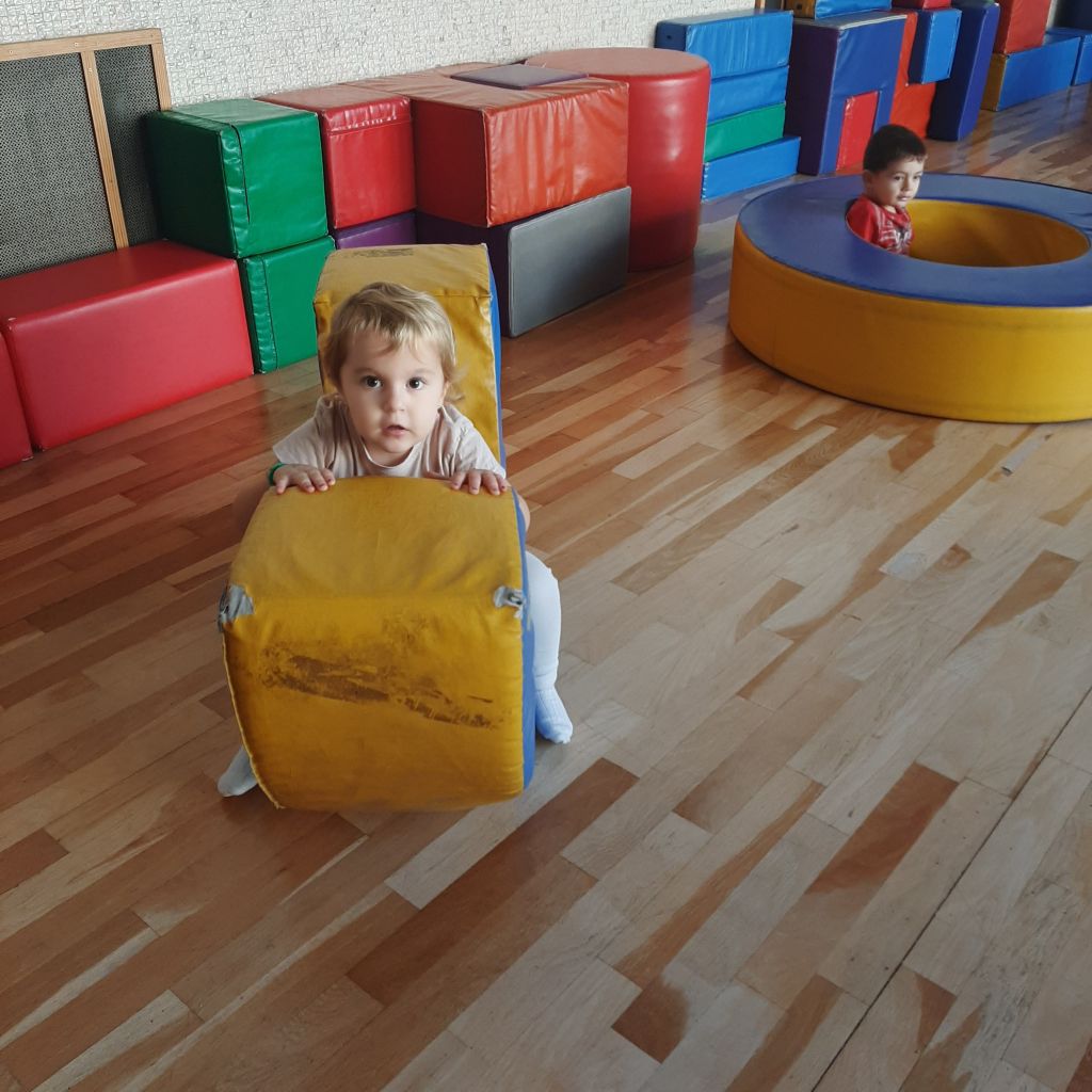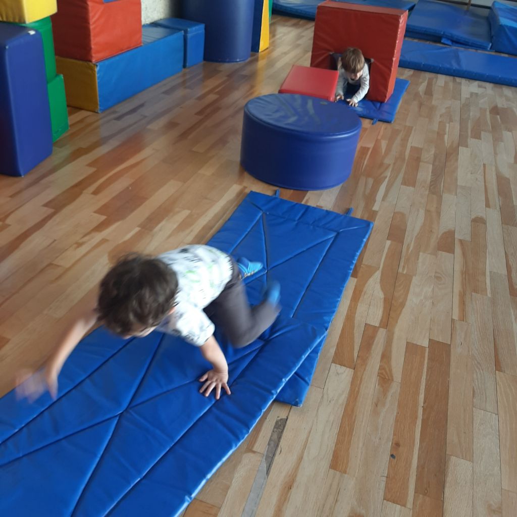 Scopriamo lo spazio della palestra. Giochiamo a seguire dei percorsi divertenti. Saltiamo, corriamo, gattoniamo, rotoliamo, dondoliamo. Prendiamo confidenza con i materiali morbidi, creiamo insieme agli amici stravaganti costruzioni ed impariamo a muoverci in un ambiente nuovo da condividere con gli altri.