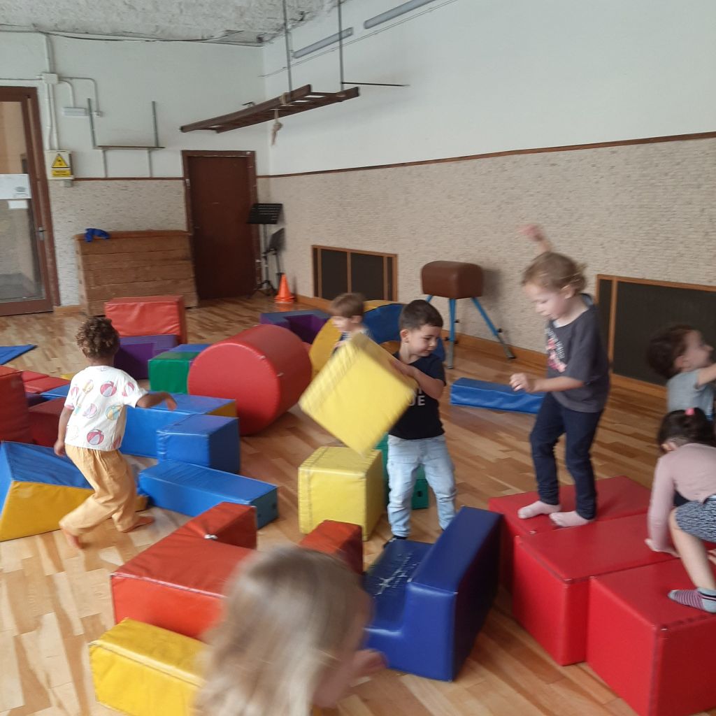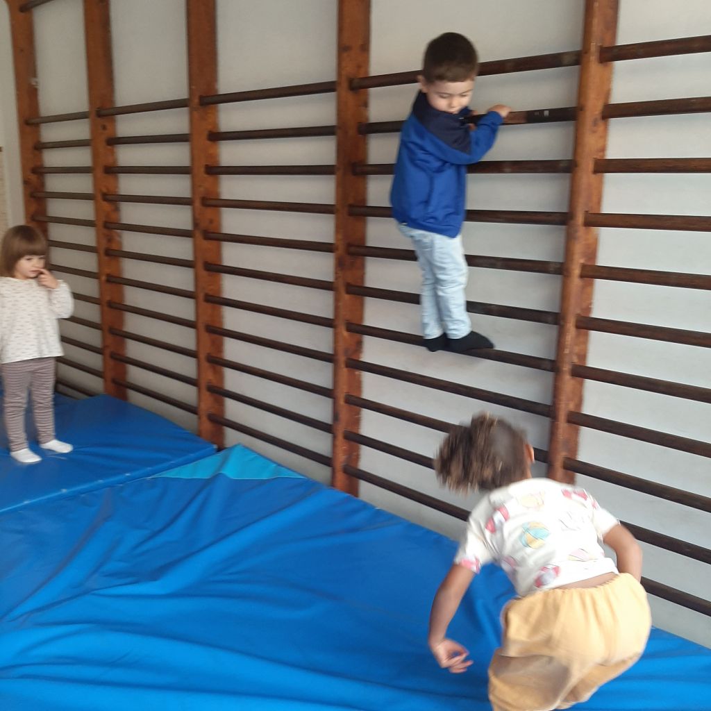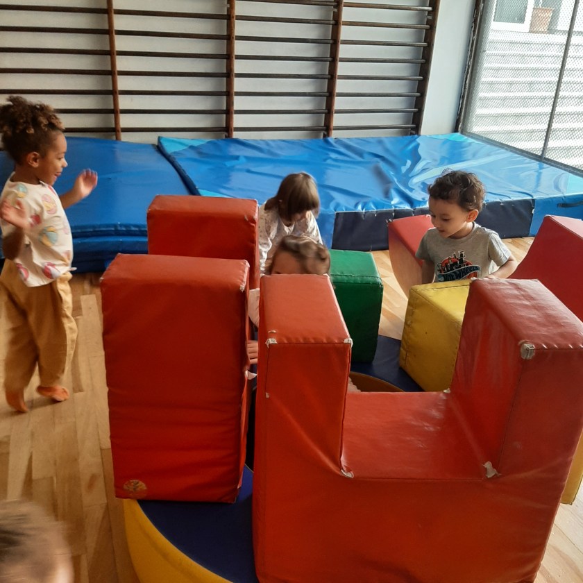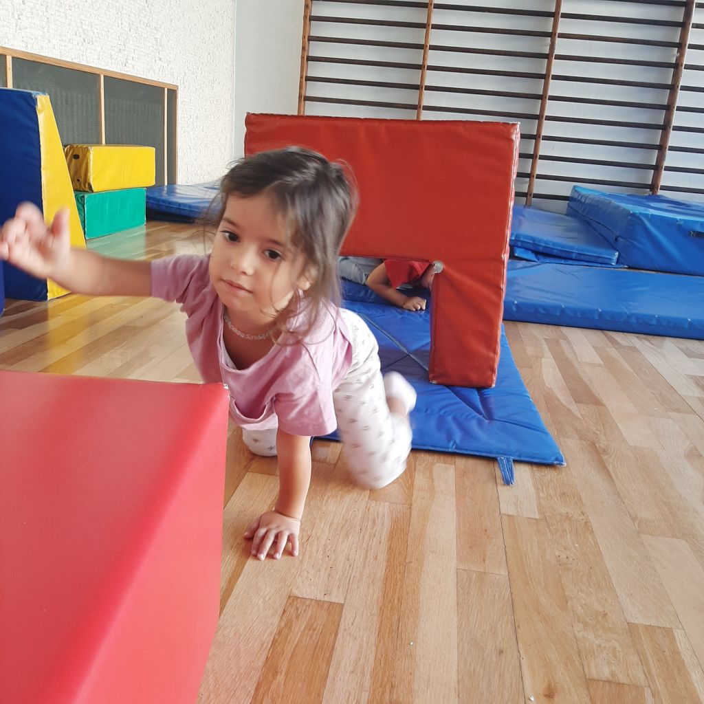 Scopriamo lo spazio della palestra. Giochiamo a seguire dei percorsi divertenti. Saltiamo, corriamo, gattoniamo, rotoliamo, dondoliamo. Prendiamo confidenza con i materiali morbidi, creiamo insieme agli amici stravaganti costruzioni ed impariamo a muoverci in un ambiente nuovo da condividere con gli altri.