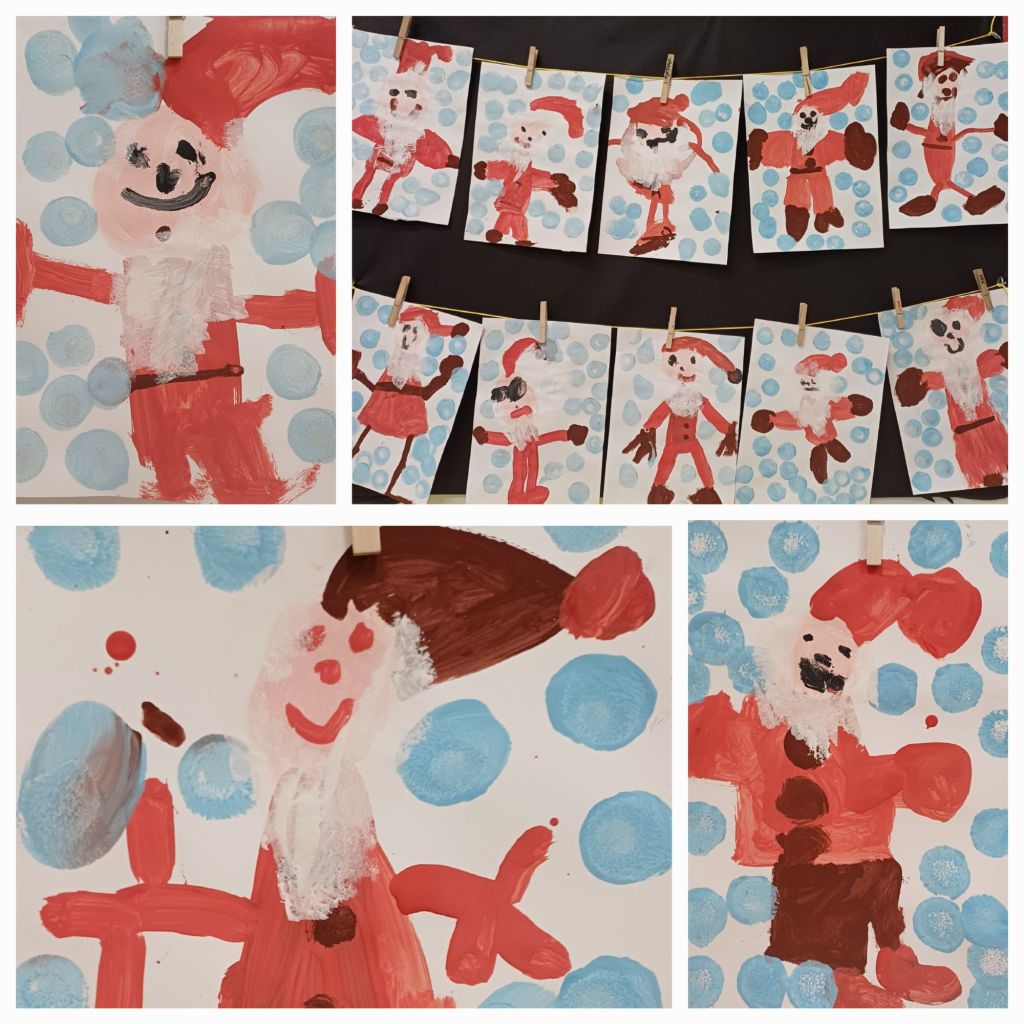 Natale è… una sfilata di Babbi Natale, pitturati dai bambini e dalle bambine di 4 e 5 anni: alti, bassi, smilzi, grossi, ognuno differente, ma tutti portatori di magia ed illusione!