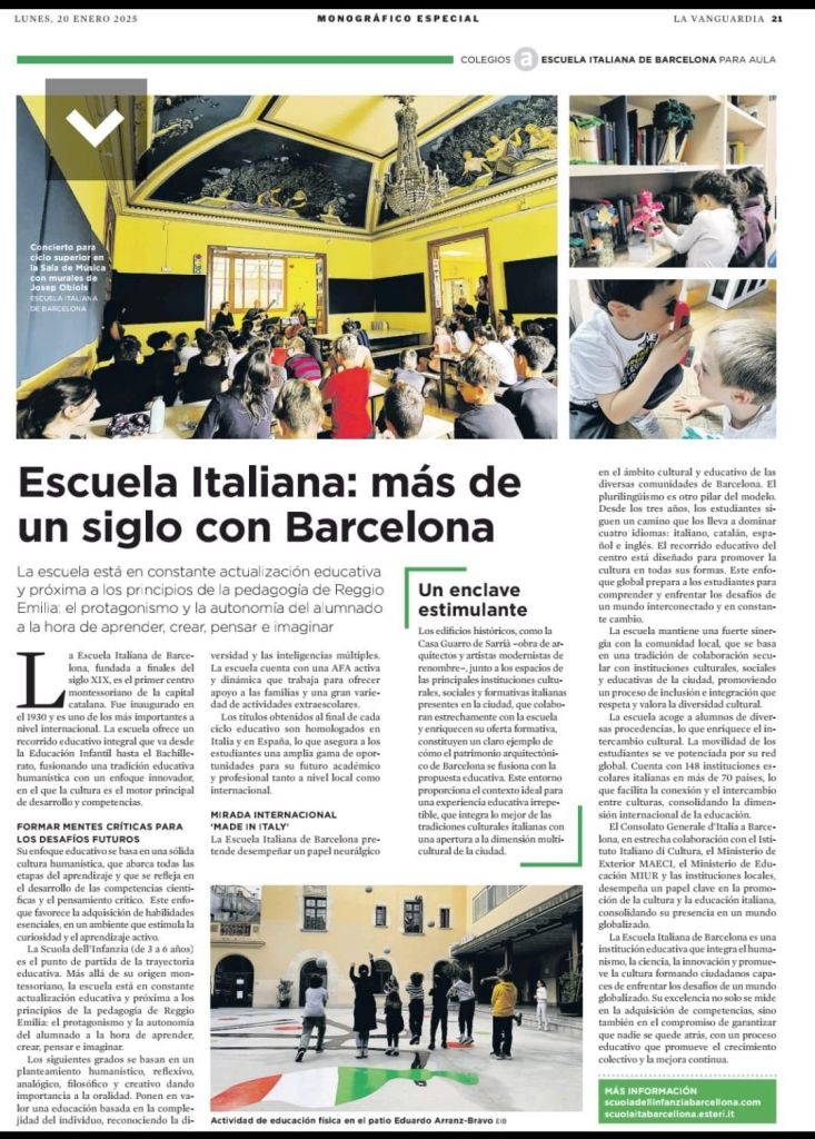 La Vanguardia ha pubblicato oggi un bellissimo articolo dedicato alla nostra scuola, presente a Barcellona da oltre cento anni.