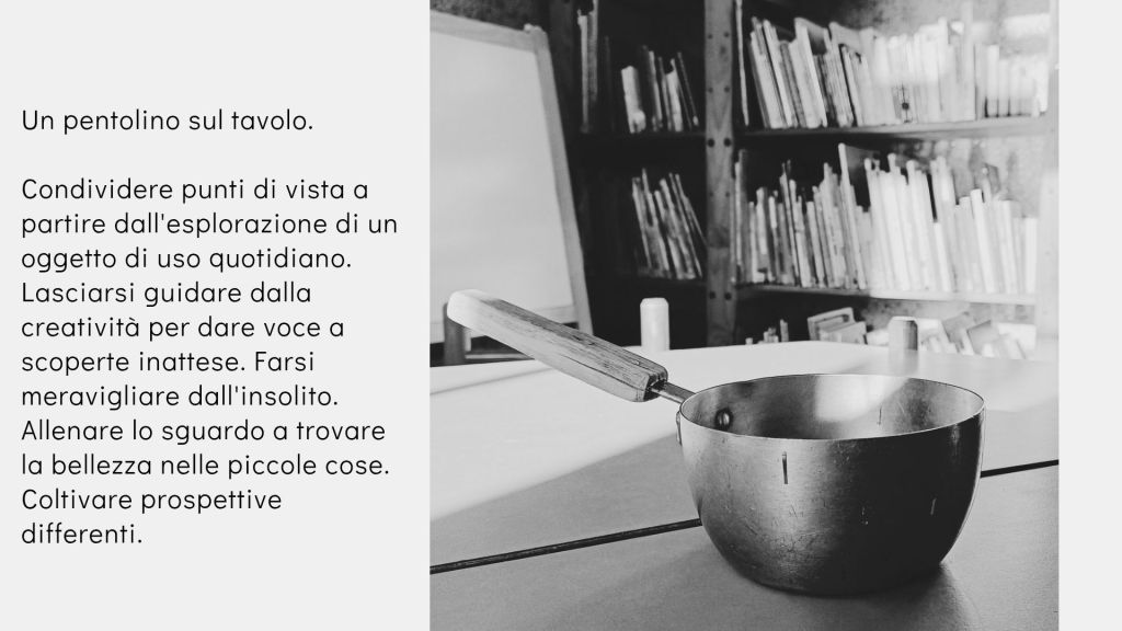 Lasciarsi guidare dalla curiosità per dare voce a scoperte inattese. Farsi meravigliare dall’insolito. Allenare lo sguardo a trovare la bellezza nelle piccole, insignificanti cose.