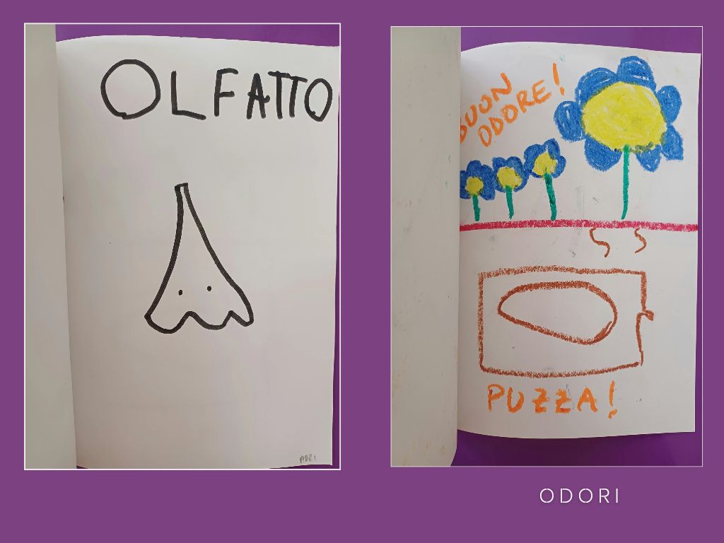 É un piccolo libro sui cinque sensi, illustrato, che stimola l’immaginazione, il gioco e le emozioni, costruito nel corso dell’anno dai bambini e bambine di 5 anni attraverso giochi, esplorazioni sensoriali, espressioni artistiche.