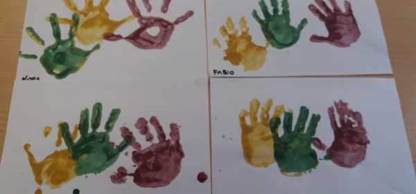 Manine come foglie d’autunno… Stampiamo con i colori dell’autunno e riflettiamo sulle sfumature delle foglie. Osserviamo le foglie e le bacche che abbiamo raccolto nel