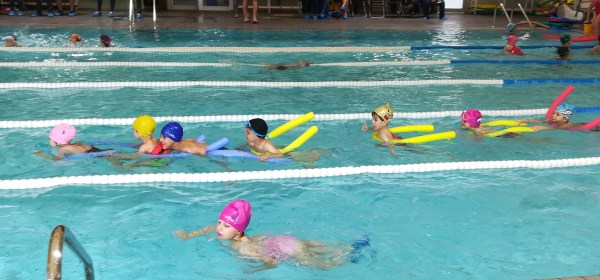 Ultimo giorno di piscina per i bambini di 4 e 5 anni, piscina scoperta e una bella e calda giornata di sole che ci fa