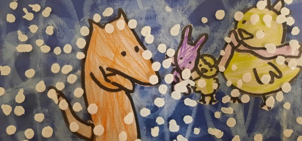 È arrivato l’inverno. Con la sua lunga sciarpa la gallina Lea sta al calduccio. Il pulcino e il coniglio, morti di freddo, chiedono alla gallina