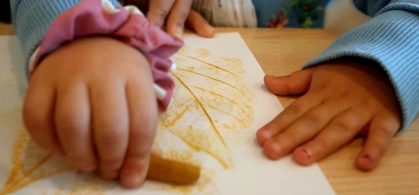 Nelle nostre esplorazioni fuori dalla scuola abbiamo raccolto molte foglie secche, di forme e colori differenti. A scuola le osserviamo, le tocchiamo, ci soffermiamo ad
