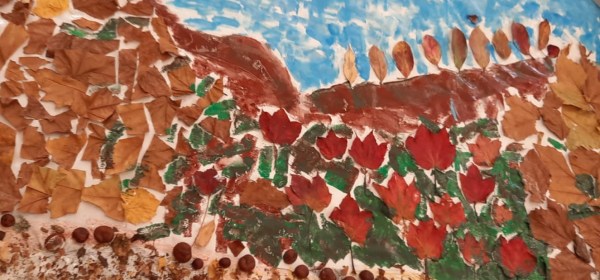 Quante idee suggeriscono le foglie in autunno! A partire dall’osservazione degli elementi autunnali raccolti e le loro sfumature riproduciamo liberamente i colori d’autunno sul foglio.