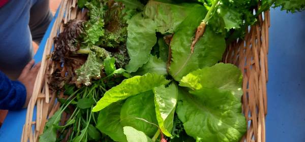 Raccogliamo puliamo, laviamo e degustiamo le fresche insalatine dell’orto: lattuga, scarola, rucola, un po’ di cipollina e odore di finocchio. Le carote, i ravanelli e