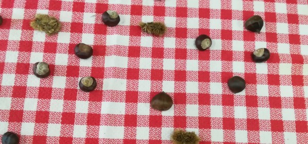 E proprio collegandoci all’incontro con la castagnera… abbiamo preparato una sessione di pittura. La protagonista: la castagna, ma non meno importante lo sfondo quadrettato che con