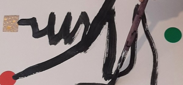 Giochiamo con la pittura e le biglie. Facciamo muovere le palline di vetro su un foglio ed osserviamo le tracce colorate di pittura che lasciano
